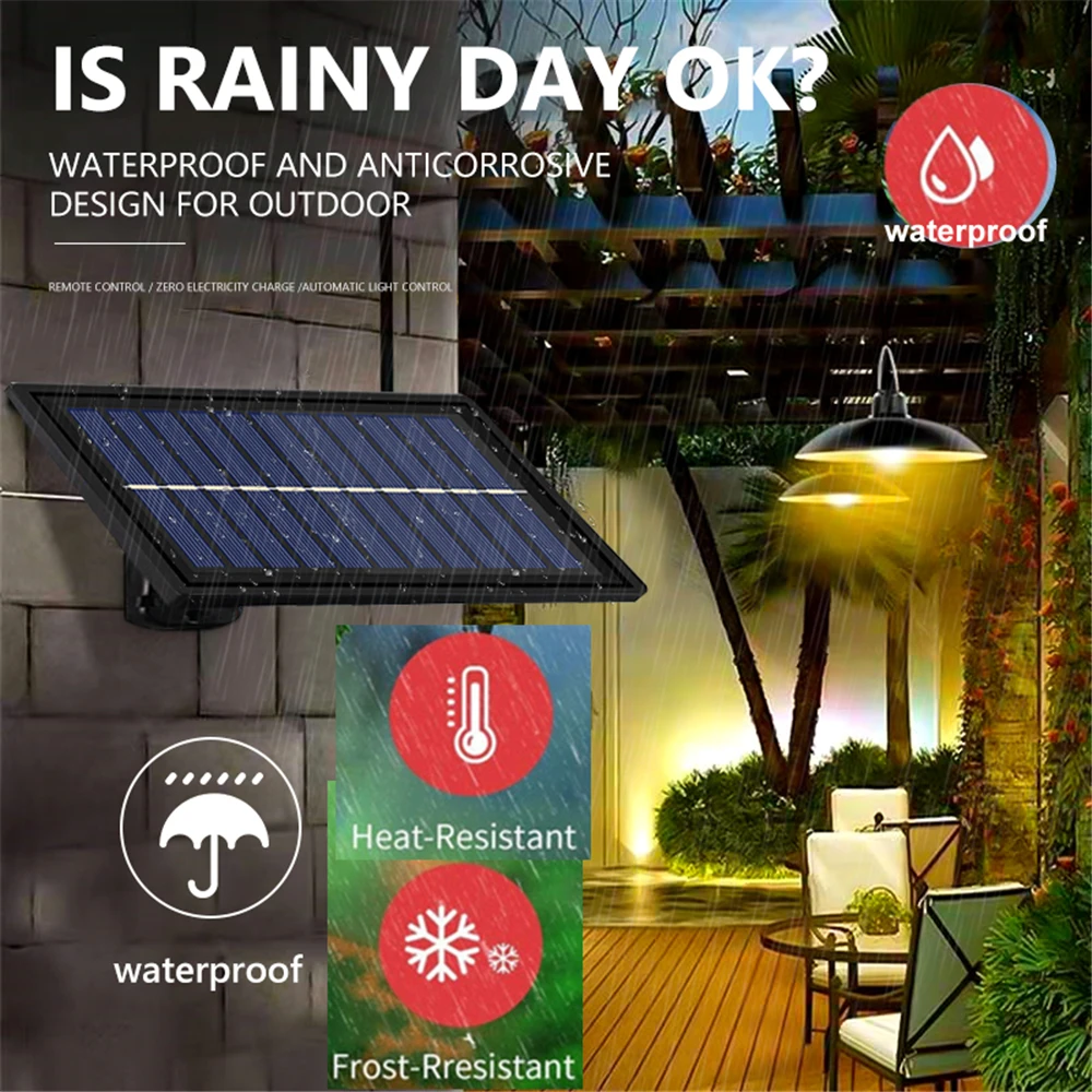 Подвесной светильник на солнечной батарее с одной или двумя головками, наружная Солнечная лампа для помещений, подвесной светильник chandliser, светильник безопасности для кемпинга, дома, сада, двора с пультом дистанционного управления и таймером, настраиваемый светильник