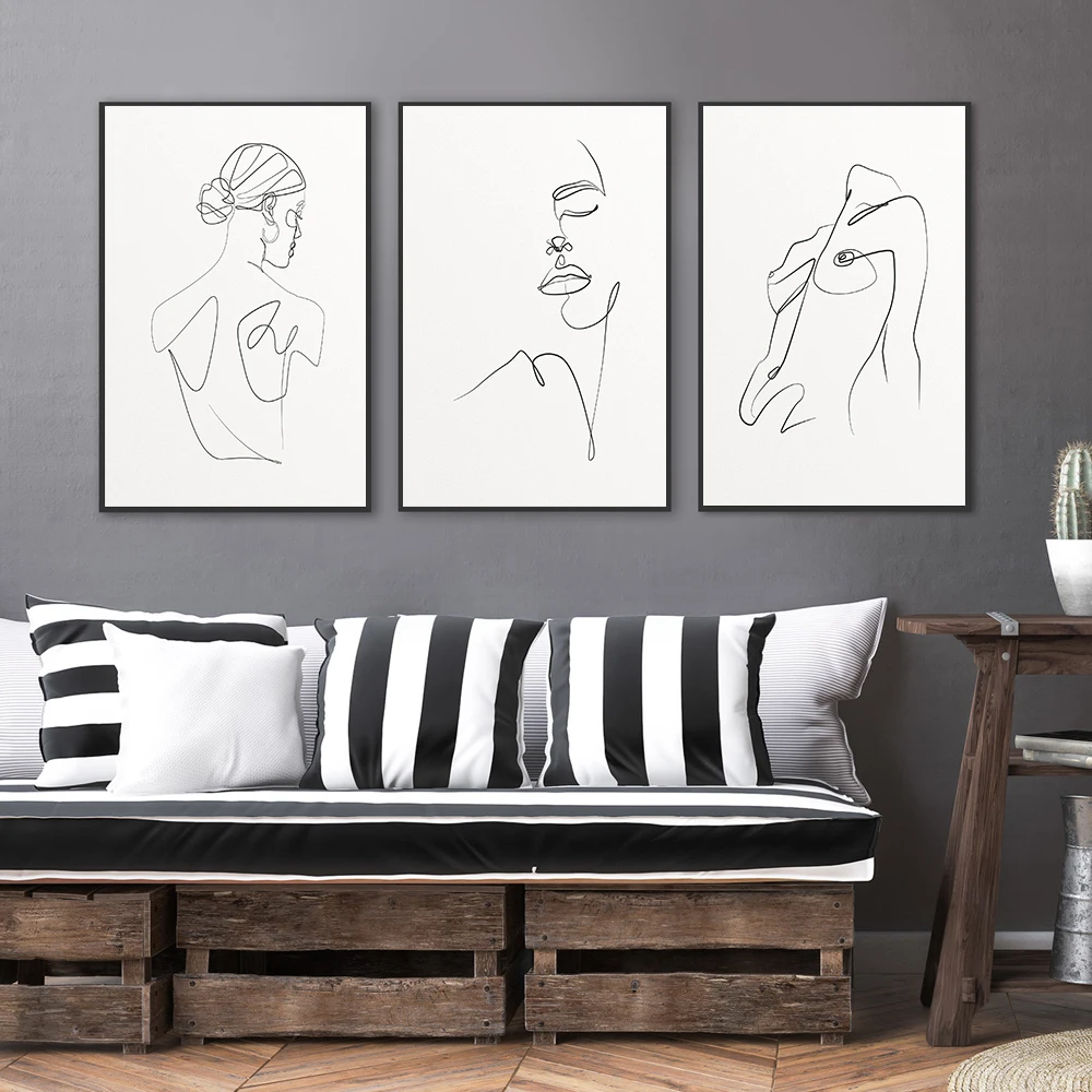 Настенный плакат в скандинавском стиле, черно-белый голая абстрактная женская обнаженная, Однолинейный холст, модульный домашний декор, картины, печать