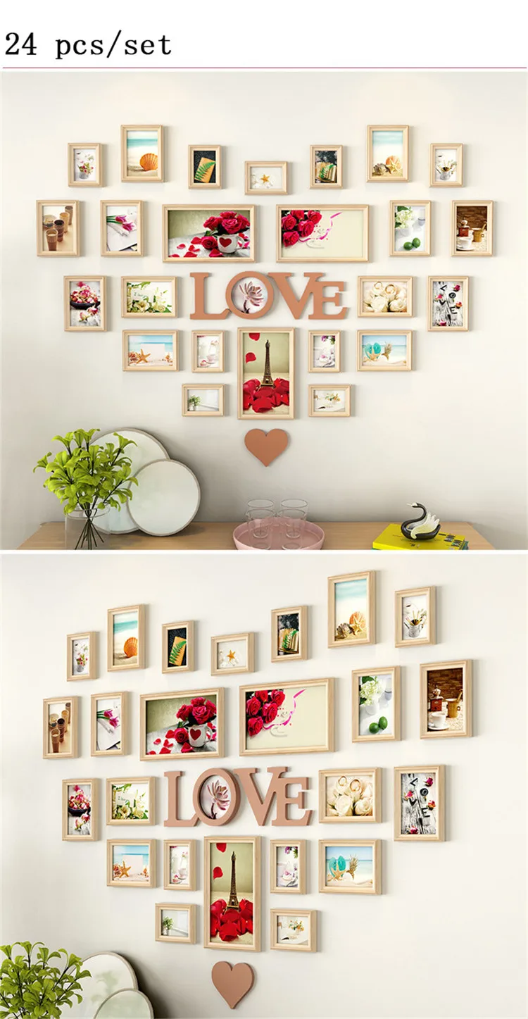 Фоторамка для гостиной в форме сердца, декоративная фоторамка, креативная, стикер на стены Любовь Комбинация, настенная рамка для картин, 24-27 рамок