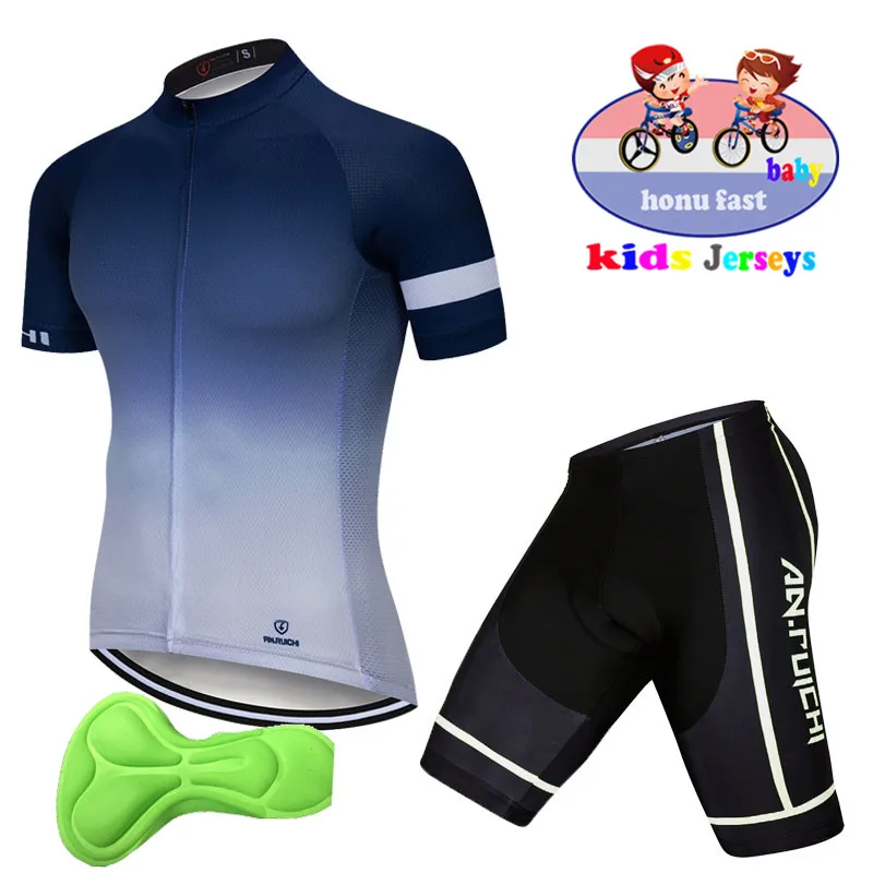 Информация Применение:Детский комплект для мальчиков и девочек Трикотаж: 100% полиэстер Брюки: 20% полиэстер и 80% лайкра Коврик: брендовый 3D гелевый коврик Функция: дышащий/быстросохнущий/Защита от ультрафиолета/компрессия Особенности 1 светильник Кая, быстросохнущая, дышащая. 2. Сетчатая вентиляция по бокам Джерси 3.Coolmax 3D Gel pad более удобный. 4. Эластичная плотная ткань, больше подходит для занятий спортом 5. Одежда и брюки с противоскользящим ремнем, больше подходят для занятий спортом.
