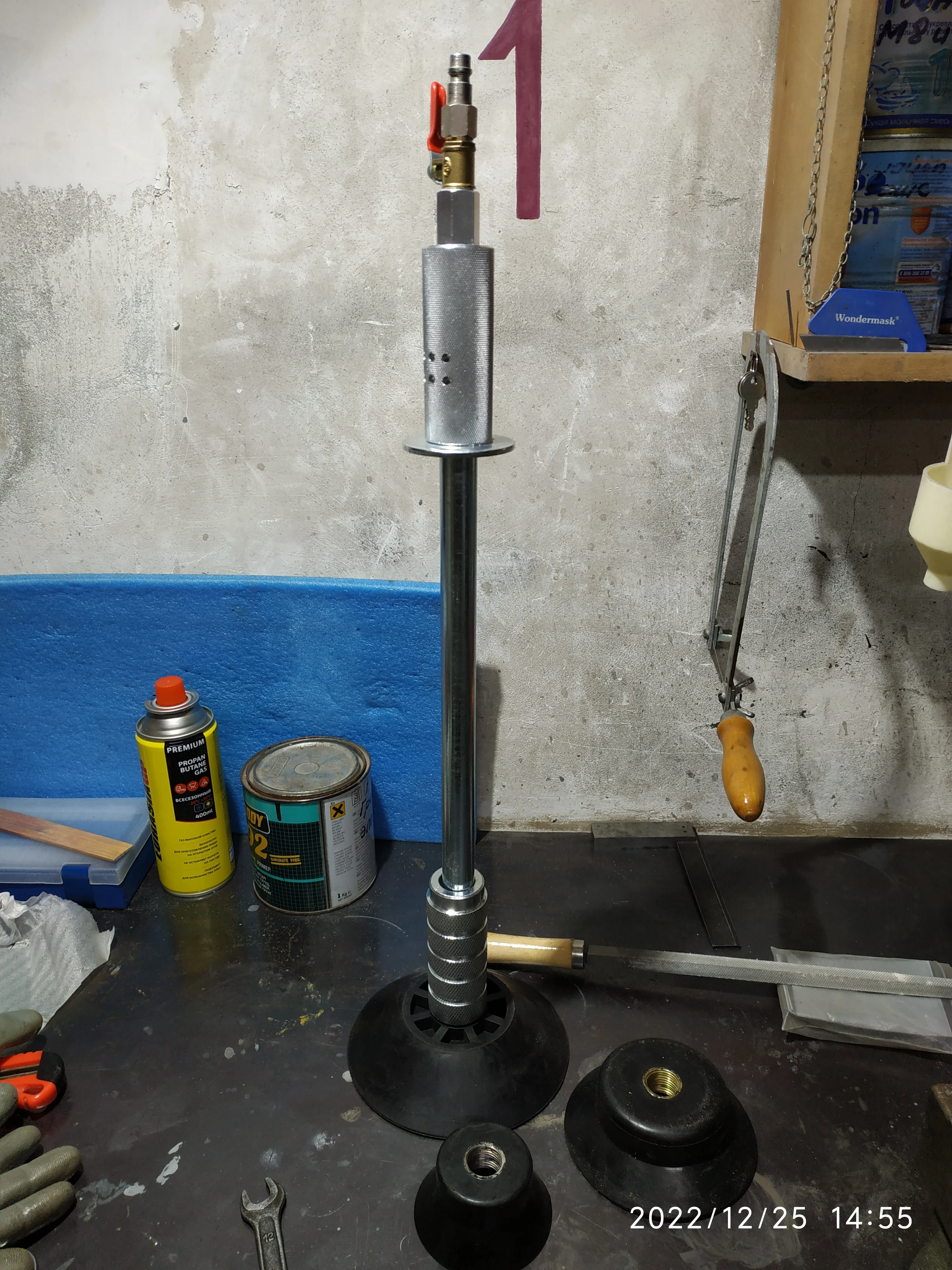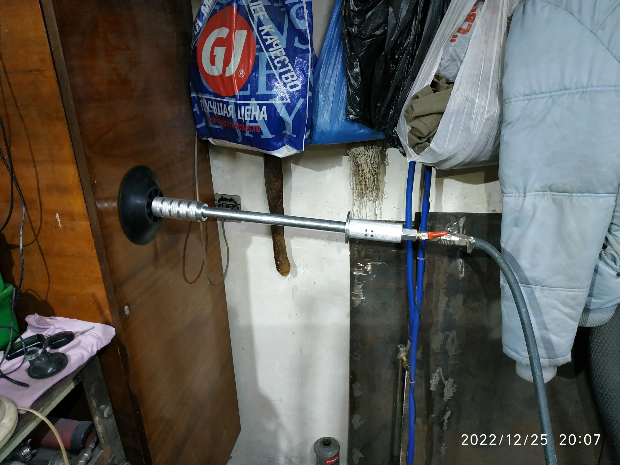 Посылка прибыла раньше на неделю. Хотя нужно отметить, что прислали её в пункт выдачи Озон в другой черте города и шанс, что я мог и вовсе не получить был весьма велик. Тем не менее посылка у меня. Все компоненты на месте, в комплекте три присоски разных размеров. Собрал. Тут также надо отметить, что искушать судьбу не стал. Я раскрутил всё, что было на резьбе (кроме присосок) и всё собрал на автомобильный герметик. Выждал несколько часов, подсоединил к воздушной магистрали и испытал на шифонере. Смотрите результат на фото.
