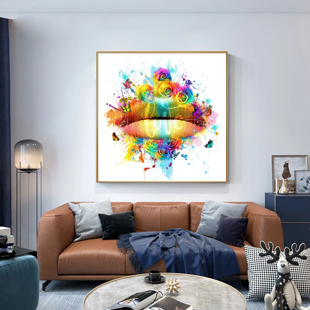 Современный граффити Печать на полотнах Цвет цветок губы Плакаты и художественная печать на холсте стены в искусстве для Гостиная домашний декор