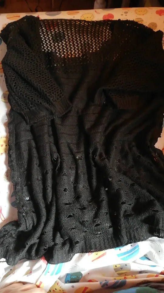 получила товар ,но вещь мне не понравилась, нитки на швах кругом висят ,кофта коротенькая ,еле до талили достаёт, на фото она смотрится хорошо,а мне её вид не понравился.