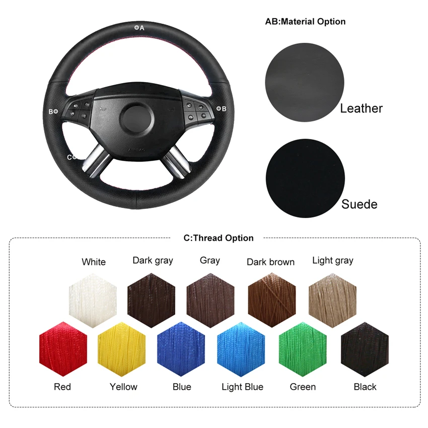 A: черная натуральная кожаB: черная перфорированная натуральная кожаC: Красная Нить