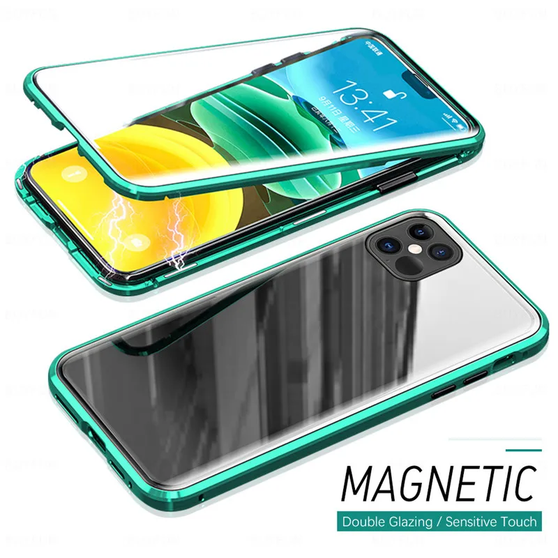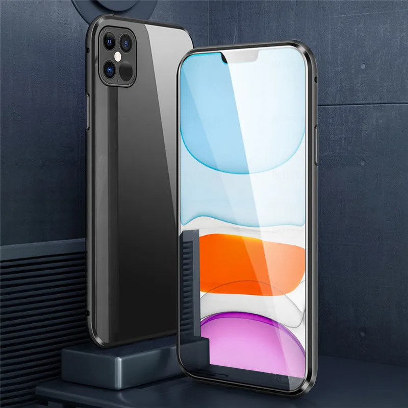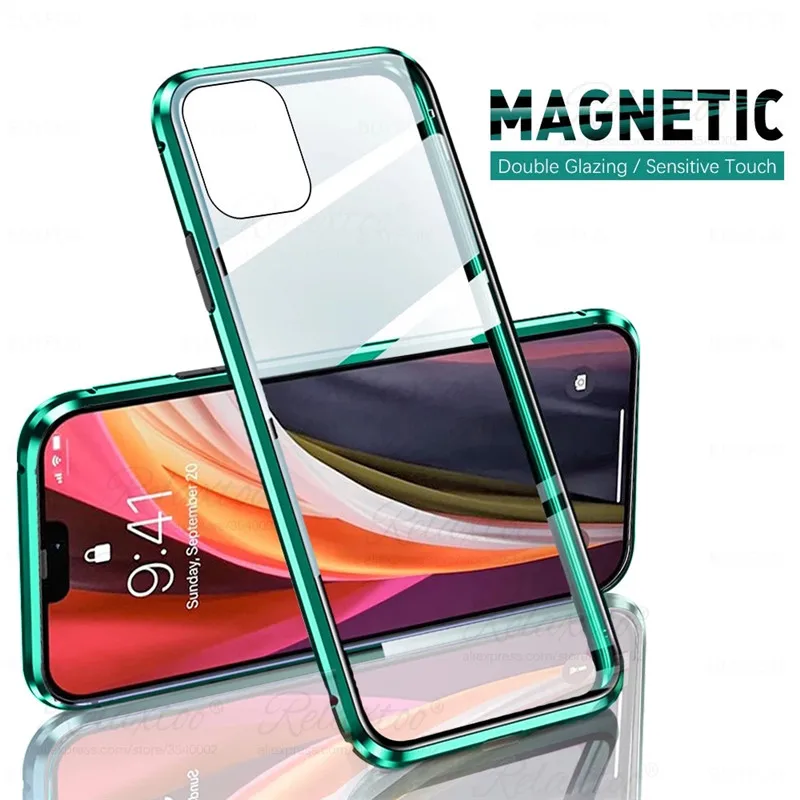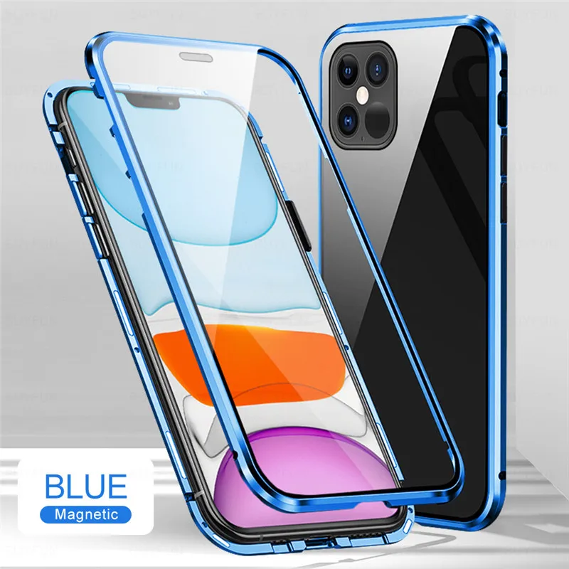 Двухсторонний Магнитный чехол для iPhone 12 Pro Max XR XS MAX 11 8 7 6 6s Plus, магнитный стеклянный чехол для телефона iPhone 12 7 8, чехол