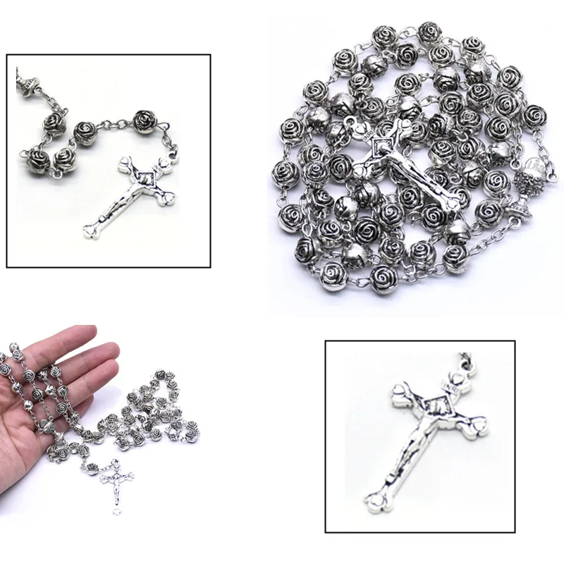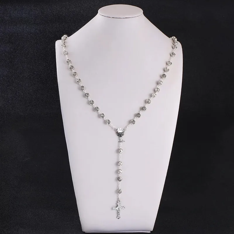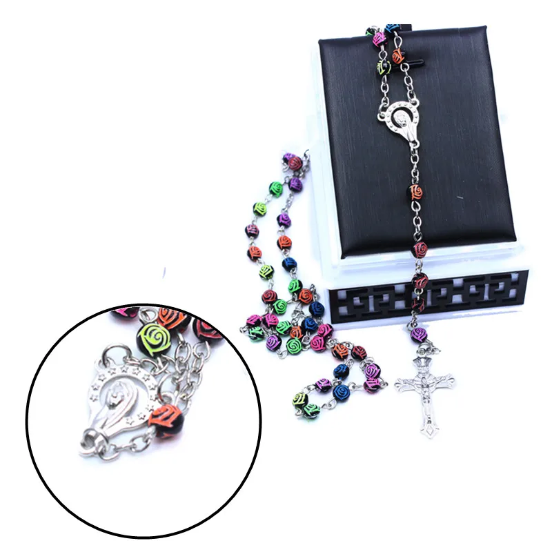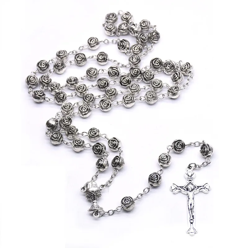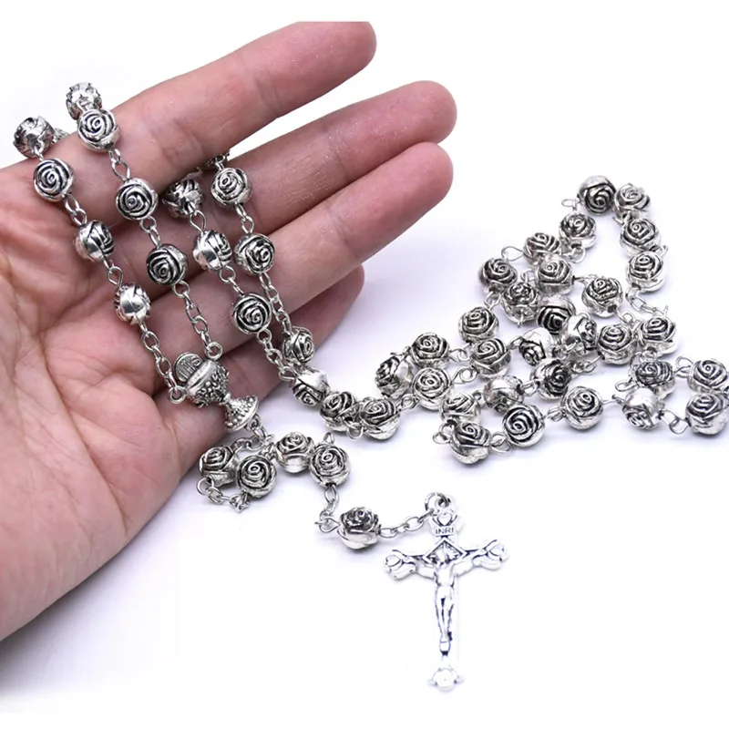 Женское винтажное ожерелье с розами диаметром 8 мм, молитвенные кресты, религиозные украшения для церкви