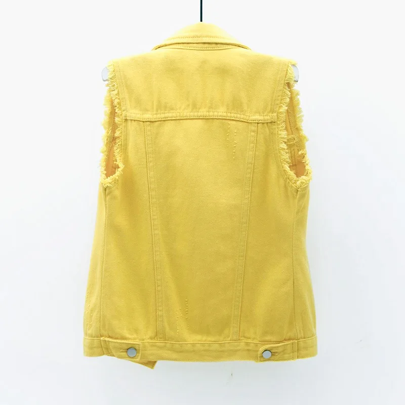 Жилет женский джинсовый без рукавов, джинсовый жилет карамельного цвета с отложным воротником и пуговицами, с карманами, размера плюс на весну и осень, S-5XL