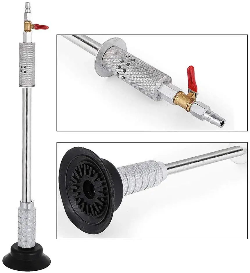 2. Сильное всасывание создано в воздушном напорном блоке всасывания воздуха инструмента bumping. Воздух всасывается через блок сжатия воздуха, так что резиновая присоска прочно соединена с корпусом через всасывание. Область, которую нужно работать, затем легко и аккуратно удаляется ударным молотком.