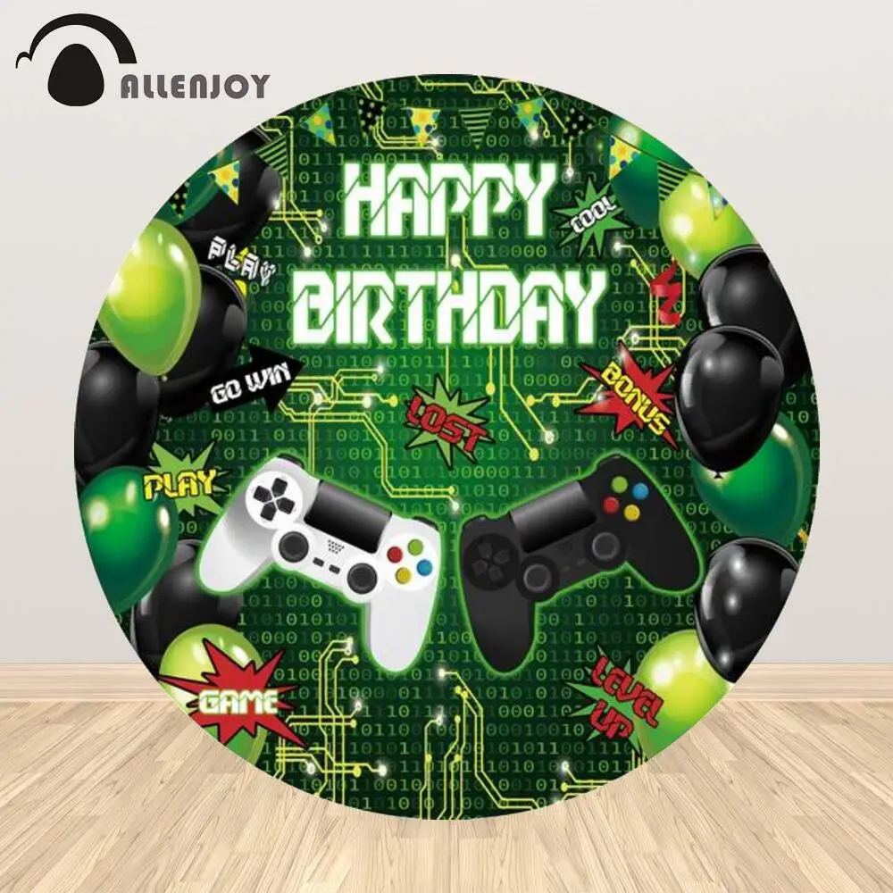 Allenjoy игровые круглые фоны на тему дня рождения черные зеленые воздушные шары украшение для вечевечерние НКИ мальчика персонализированный фон на заказ