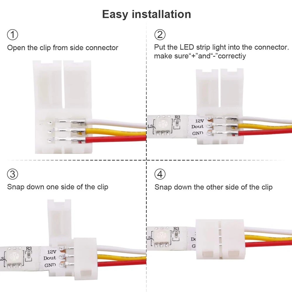 Продукты2-контактный разъем PCB только для 1. Ширина светильник Ной ленты 3528 для 2-контактного разъема 8 мм, светильник светодиодной ленты 5050 для 2-контактного разъема 10 мм.2. Одноцветная Светодиодная лента.3-контактный разъем RGB 15 см кабель для WS2811 WS2812B 3-контактная Светодиодная лентаОписание светодиодный для светодиодной ленты WS2811 WS2812B 10 ммДлина: 15 смСоединительная точка: 3 контакта RGBПайка не нужнаМатериал: ПВХРабочая температура. : От-40 до 70 градусов4-контактный разъем RGB PCB адаптер для светодиодной ленты 5050 RGB 10 мм-D 15 см кабельОписание:Для: светодиодной ленты 10 мм 5050 RGBДлина провода: 15 смСоединительная точка: 4 контакта RGBПайка не нужнаМатериал: ПВХРабочая температура. : От-40 до 70 градусов5pin коннектор RGBW PCB адаптер для 5050 RGBW Светодиодная лента 12 мм-D 15 см кабельОписание:Для: светодиодной ленты 10 мм/12 мм 5050 RGBWДлина провода: 15 смТочка соединения: 5 контактов RGBWПайка не нужнаМатериал: ПВХРабочая температура. : От-40 до 70 градусов6-контактный разъем RGBWW PCB адаптер для светодиодной ленты 5050 RGBWW 12 мм-D 15 см кабельОписание:Для: светодиодной ленты 12 мм 5050 RGB CCTДлина провода: 15 смСоединительная точка: 6 контактов RGBWWПайка не нужнаМатериал: ПВХРабочая температура. : От-40 до 70 градусов