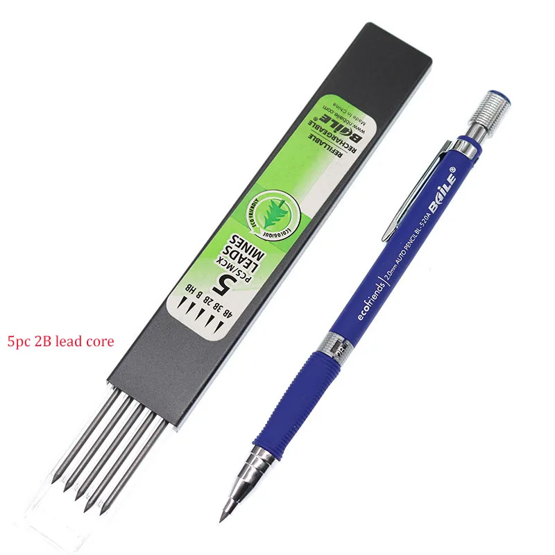 Механический карандаш 2B, 2 мм, 1 набор, автоматический механический карандаш для рисования, 5 заправок, набор механических карандашей для письма