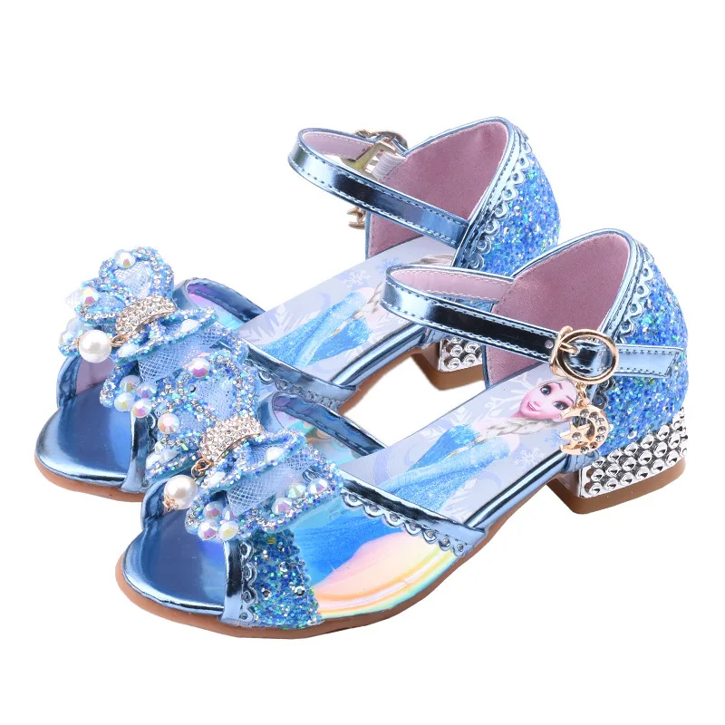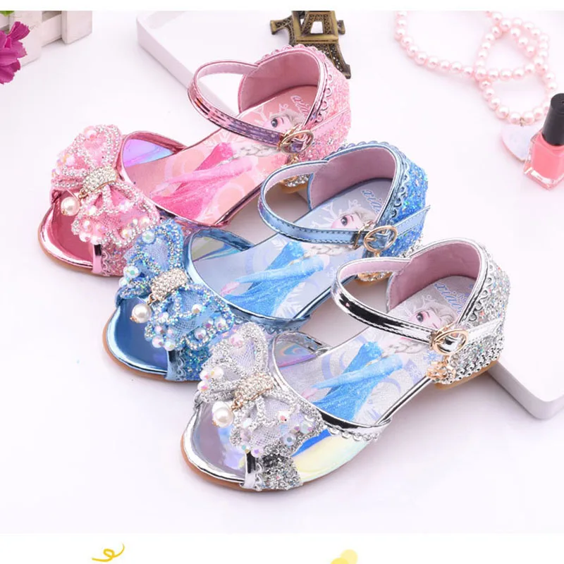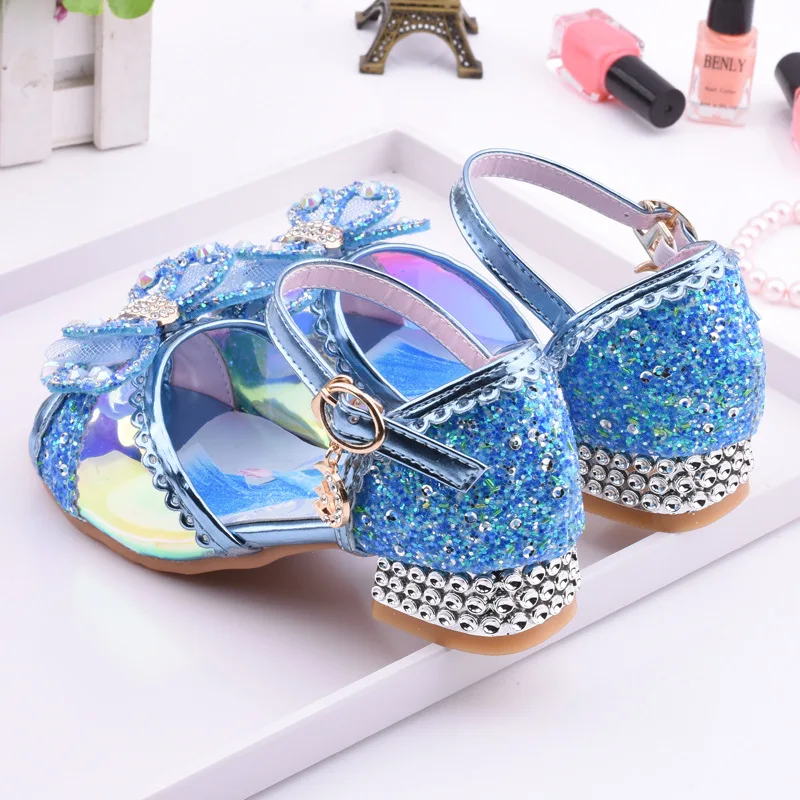 Босоножки кожаные детские с кристаллами, на высоком каблуке