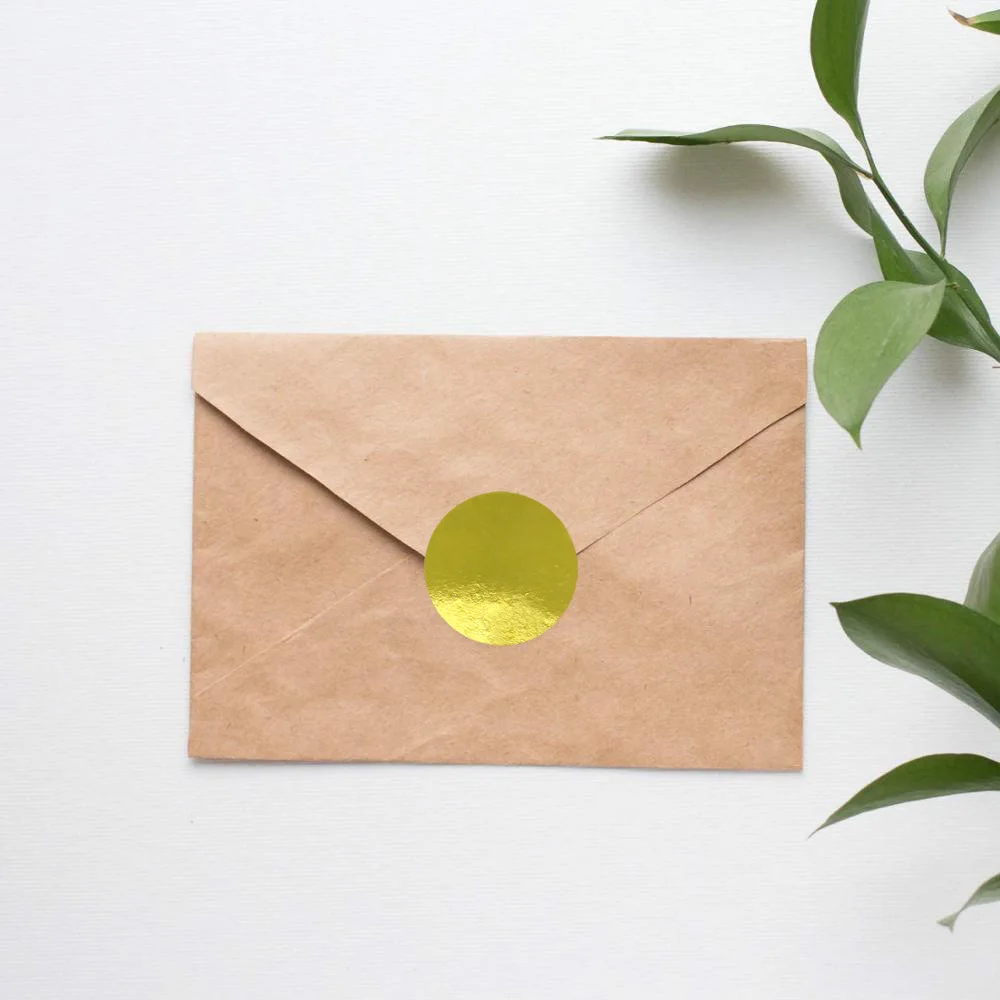 500 шт., 1 дюйм, золотистая круглая герметичная этикетка ручной работы, Фотокарта, вечеринка, искусственная кожа