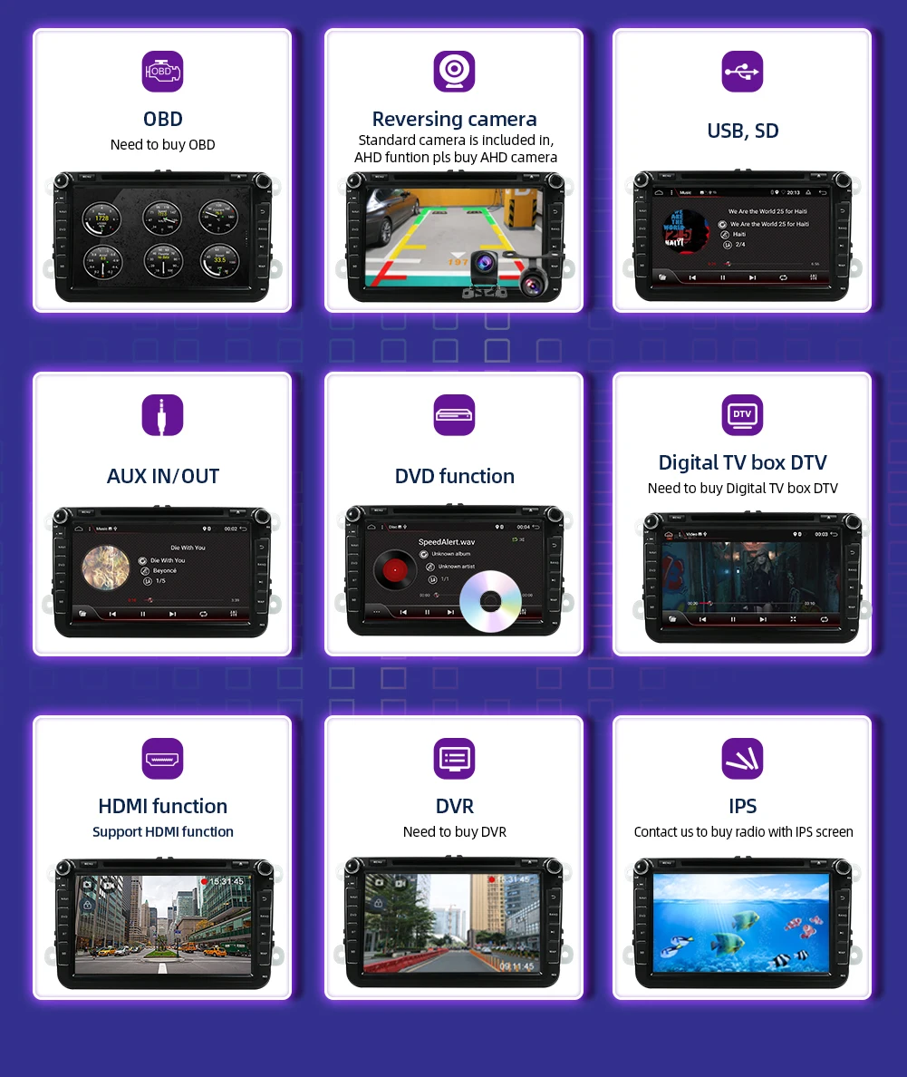 OptionalDigital TV,OBD,DVR,Special Cable.3G DONGEL,4G DONGEL,OBD