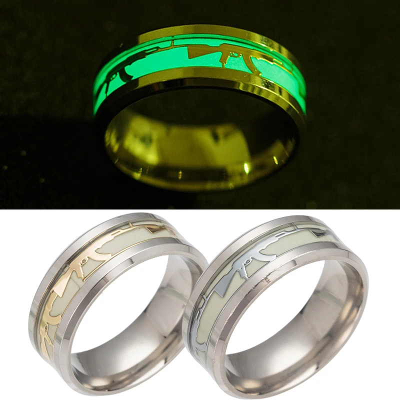 2021 люминесцентное кольцо AK47, инкрустированное зеленым фоном, модное мужское люминесцентное светящееся кольцо, лучший изысканный подарок для парня