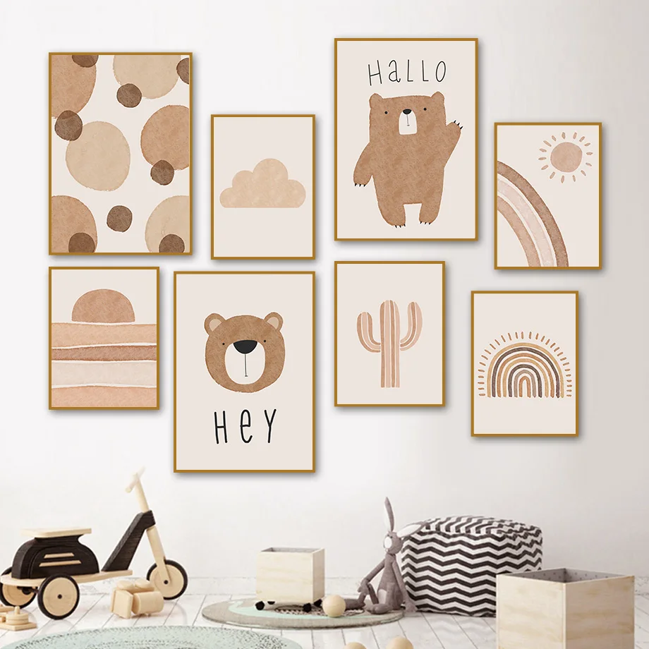 Жираф слон Зебра солнце Радуга мультфильм настенная Картина на холс...