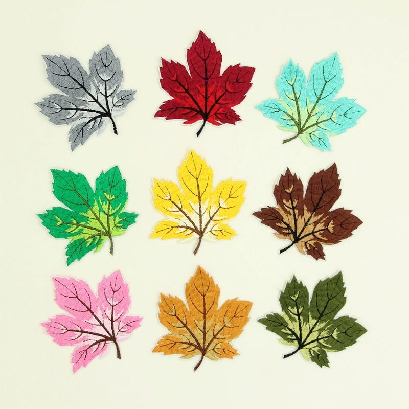 9 шт., разноцветные вышитые аппликации в виде кленового листа, значок сделай сам