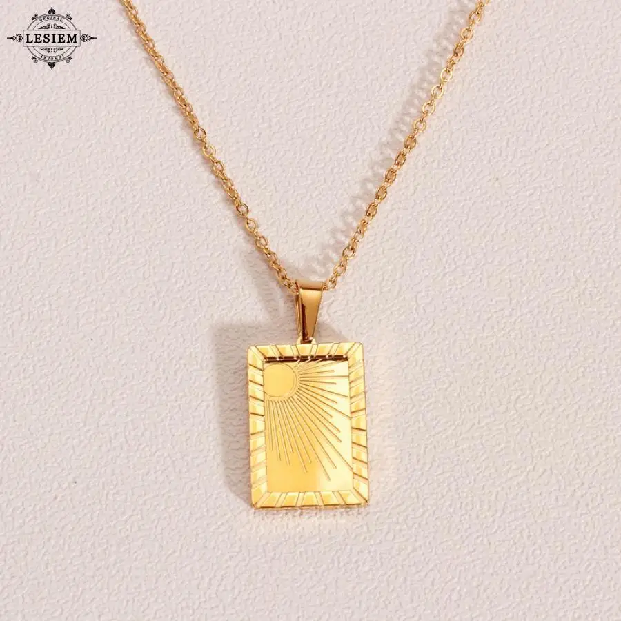 Ожерелья и подвески LESIEM золотого цвета с бусинами, солнцем, луной, квадратами, аксессуары для выпускного вечера