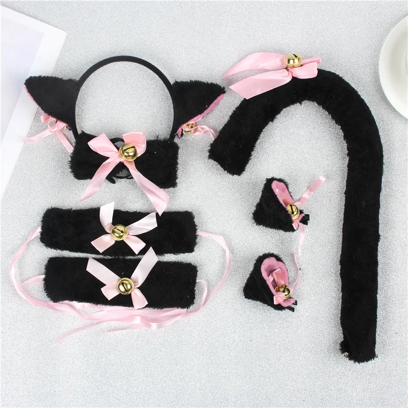 6 цветов красивый маскарад Хэллоуин кошачьи ушки Косплей кошачьи уши аниме костюм для вечеринки галстук-бабочка колокольчик головной убор повязка на голову аниме