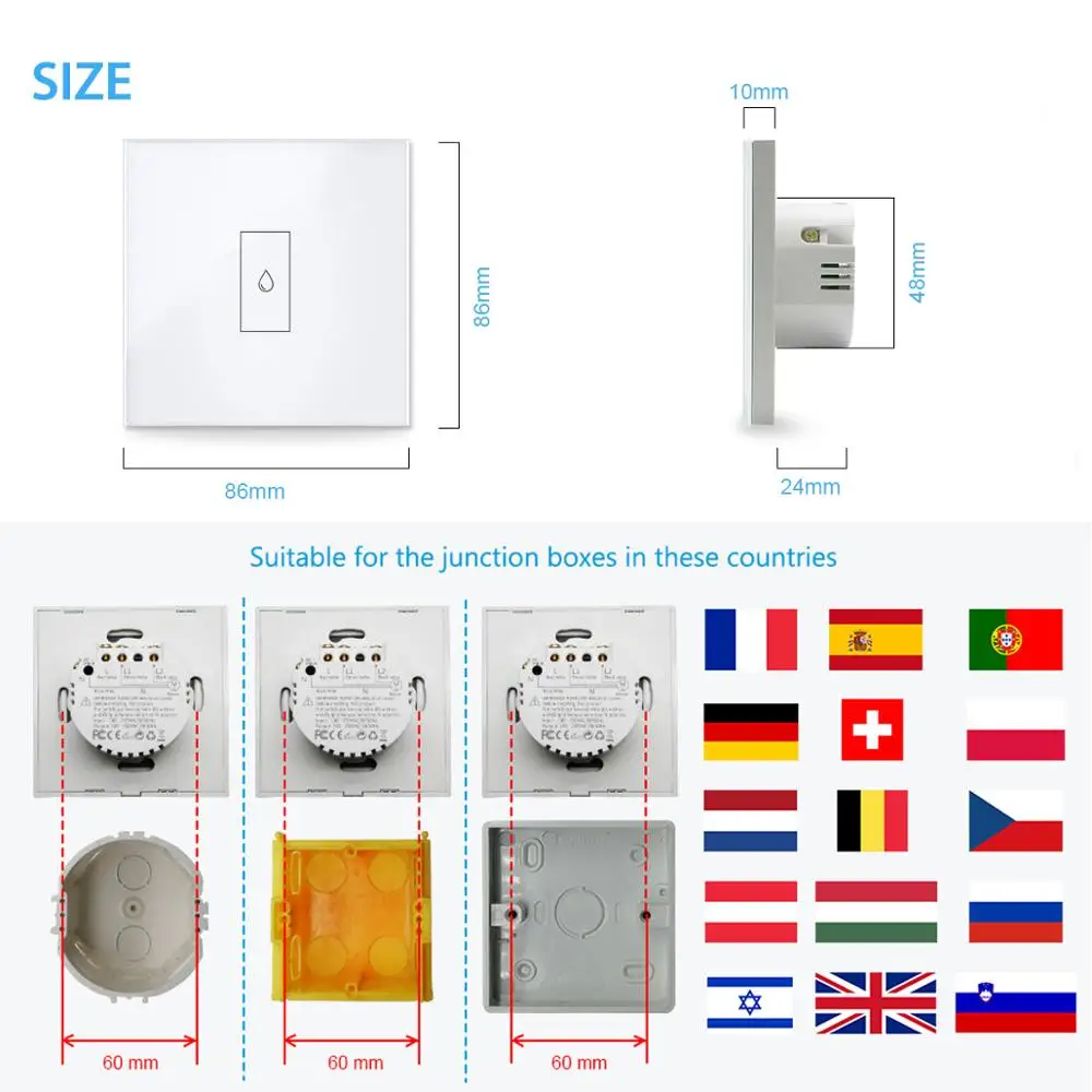 Specialized специализированный переключатель для высокомощной бытовой техники Высокое качество 20А реле, более стабильное и безопасное, макс. 4400 Вт ※ Сенсорная панель из закаленного стекла Сенсорная кнопка высокой чувствительности, быстрая реакция, без задержек Remote дистанционное управление с помощью приложения из любого места Управление (включение/выключение, Установка таймера) устройство удаленно с помощью приложения «Smart Life»/«Tuya Smart» на вашем смартфоне с помощью Wi-Fi или сети 4G/5G, не требуется концентратор/шлюз. ※ Голос Управление Работает с Amazon Alexa, Google Home и Siri(iOS 12,0 или более поздней версии), вы можете управлять голосовым устройством через голосовые команды. ※ Многофункциональный таймер: Обратный отсчет/Расписание/циркуляция/случайный/инчинг -Вы можете установить 1 или более таймер, чтобы сделать бойлер включенным/выключенным автоматически, или работать в течение определенного периода времени, а затем автоматически закрыть. Совместно совместно используемое устройство и групповое управление Несколько сотовых телефонов могут управлять одним и тем же переключателем котла; Один мобильный телефон может управлять несколькими переключателями одновременно.