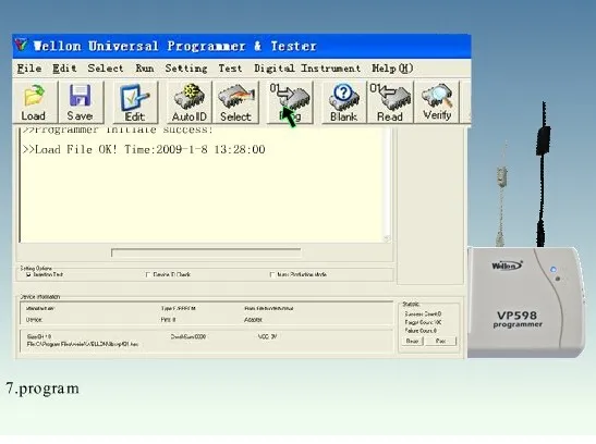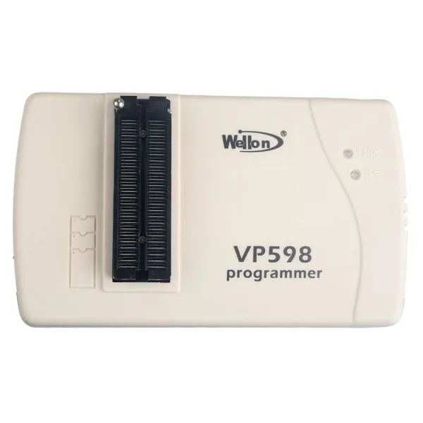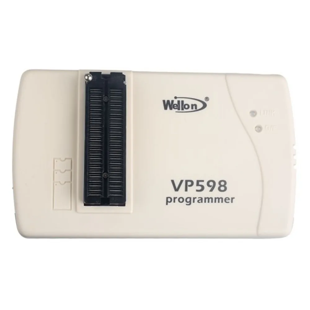 Характеристики Wellon VP598:Габариты: 168 × 98 × 23 мм, вес: 265 г.Электрическая спецификация. Адаптера переменного тока: AC Вход 100V до 240V, 50/60Hz, DC Выход 9V/0.6AРозетка 48 Pin ZIF с популярными пин-драйверами.Интерфейс с ноутбуком, ПК или совместимый через USB-портПринимает стандартные форматы файлов: JEDEC, INTEL (расширенный) HEX, HOLTEK, EMC(.CDS), INTEL HEX16, Motorola S recordУправление 16 и 32-разрядным разделением слов (Настройка программирования)Функции: тестовые векторные возможности и многомассивный предохранительТестовые Логические ИС TTL/CMOS и динамические/Статические Устройства памяти случайного доступаОптимальное программирование для каждого отдельного устройстваАвтоматическая идентификация производителя и типа E(E)PROMs, автоматическая идентификация TTL/КМОП-логика, интегральная схемаВставка устройства и проверка плохого контактаПоддержка устройств низкого напряжения 1,5 вНе нужен внешний адаптер для большинства устройств.Универсальные адаптеры DIP, PLCC, QFP, TSOP, PSOP, SOIC, SSOP, SDIPРежим автоматического запуска начинает Программирование автоматически при обнаружении вставки чипаПоддерживает WindowsXP/Vista/ Windows 7 (32 бит и 64 бит)/ Windows 8 (32 бит и 64 бит)Поддерживает десять языков, таких как китайский (упрощенный), китайский (традиционный), английский, корейский, польский, итальянский, португальский, голландский, турецкий и венгерский.Поддержка устройства:PROM: N/CMOS E(E)PROM, SeriesE(E)PROM и флеш-памятьPLD: CPLD, EPLD, GAL,PEEL,PALCE и многое другоеМикроконтроллер: Atmel, Intel, chip, Signetics, Zilog и т. Д.ТЕСТ ИС:TTL (74 серии), CMOS (40/45 серии) Logic ICУстройство памяти DRAM SRAMОбновления устройства:WEILEI регулярно обновляет программное обеспечение и алгоритм устройства. Вы можете получить новейшее программное обеспечение бесплатно через Интернет