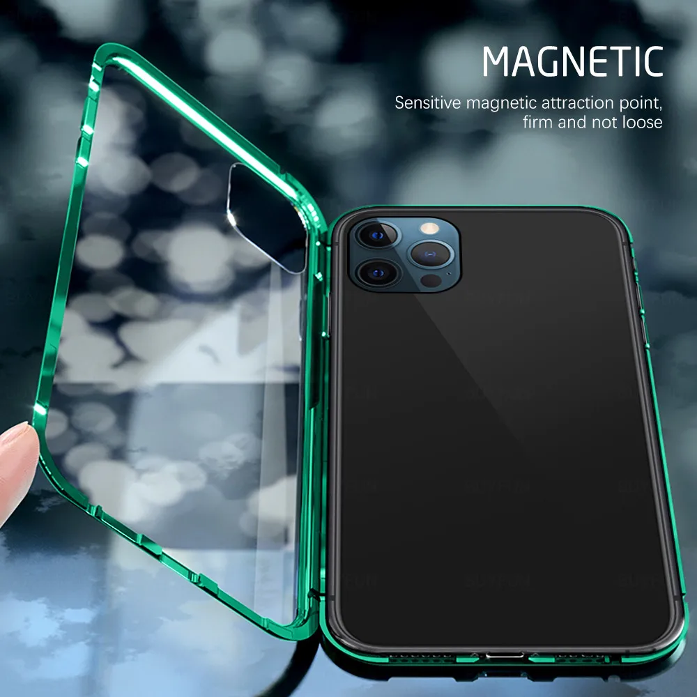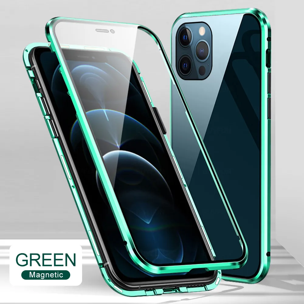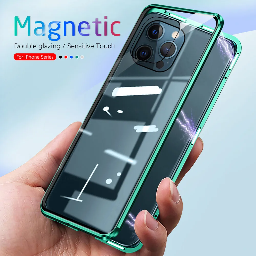 Магнитный металлический чехол из закаленного стекла для iphone 13 p...