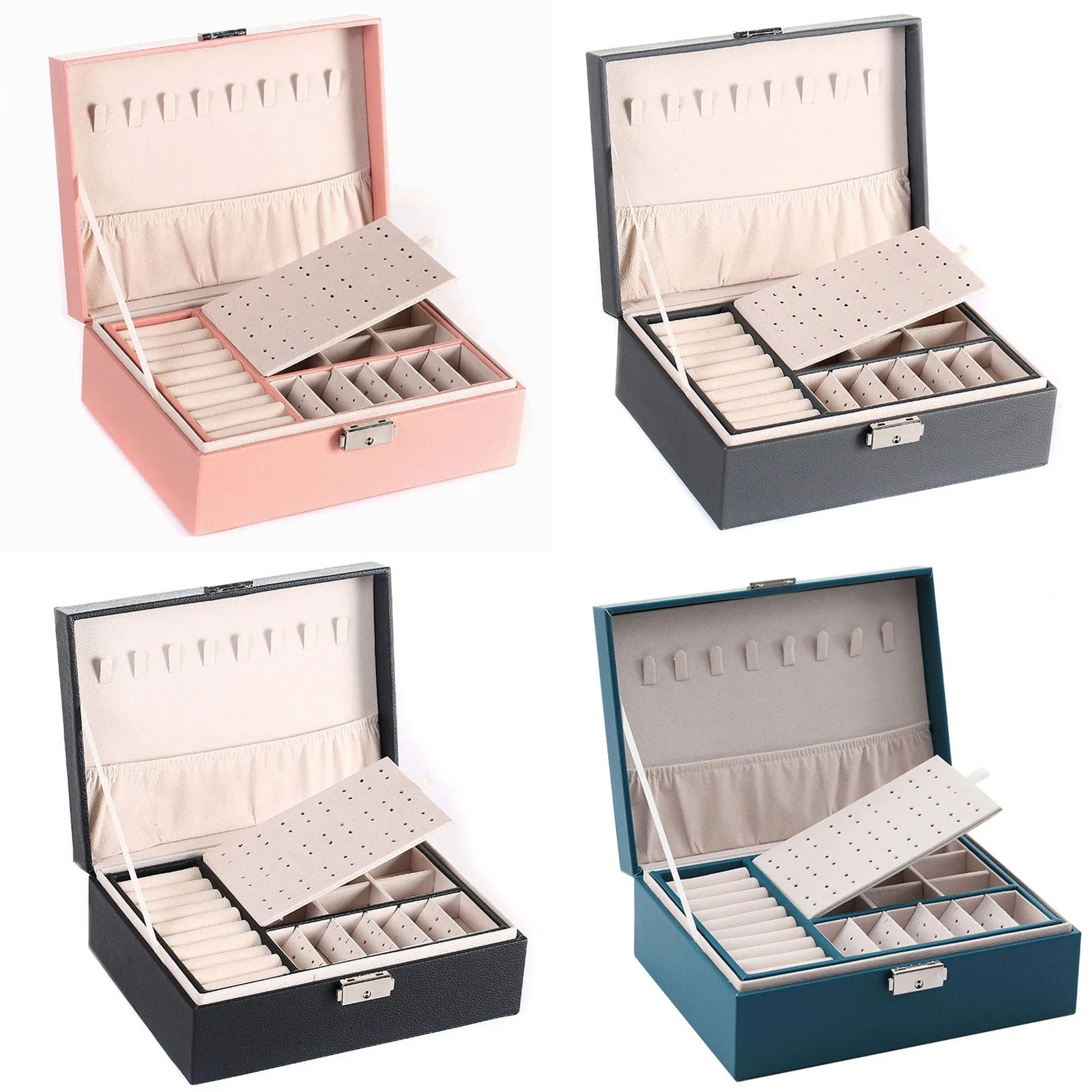 Новая двухслойная кожаная шкатулка для украшений, серьги-гвоздики, ...