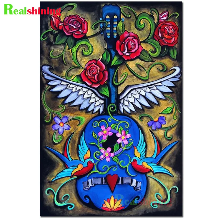 Рукоделие 5D квадратная круглая Алмазная картина с абстрактными крыльями для рукоделия искусственная гитара Алмазная Вышивка Птицы N1841