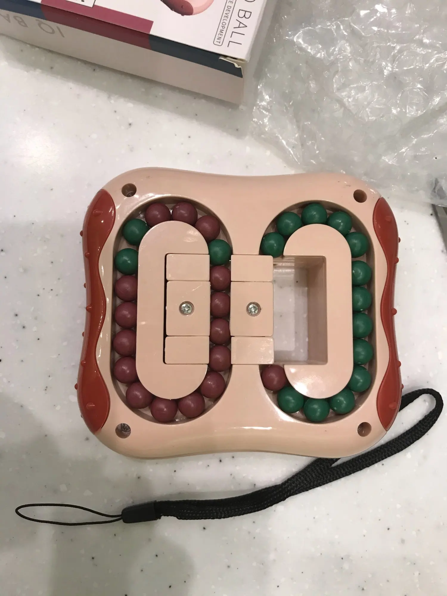 очень туго шарики передвигаются, даже пальцами не возможно передвинуть! бегунок сначала тоже еле двигался, но разработался и прям летает, а вот с продвижением шариков, просто беда! не уверенна, что разработается, думаю просто узкие канавки. а так интересная игрушка. размер её с ладонь. доставка в СПб недели 3 наверно.