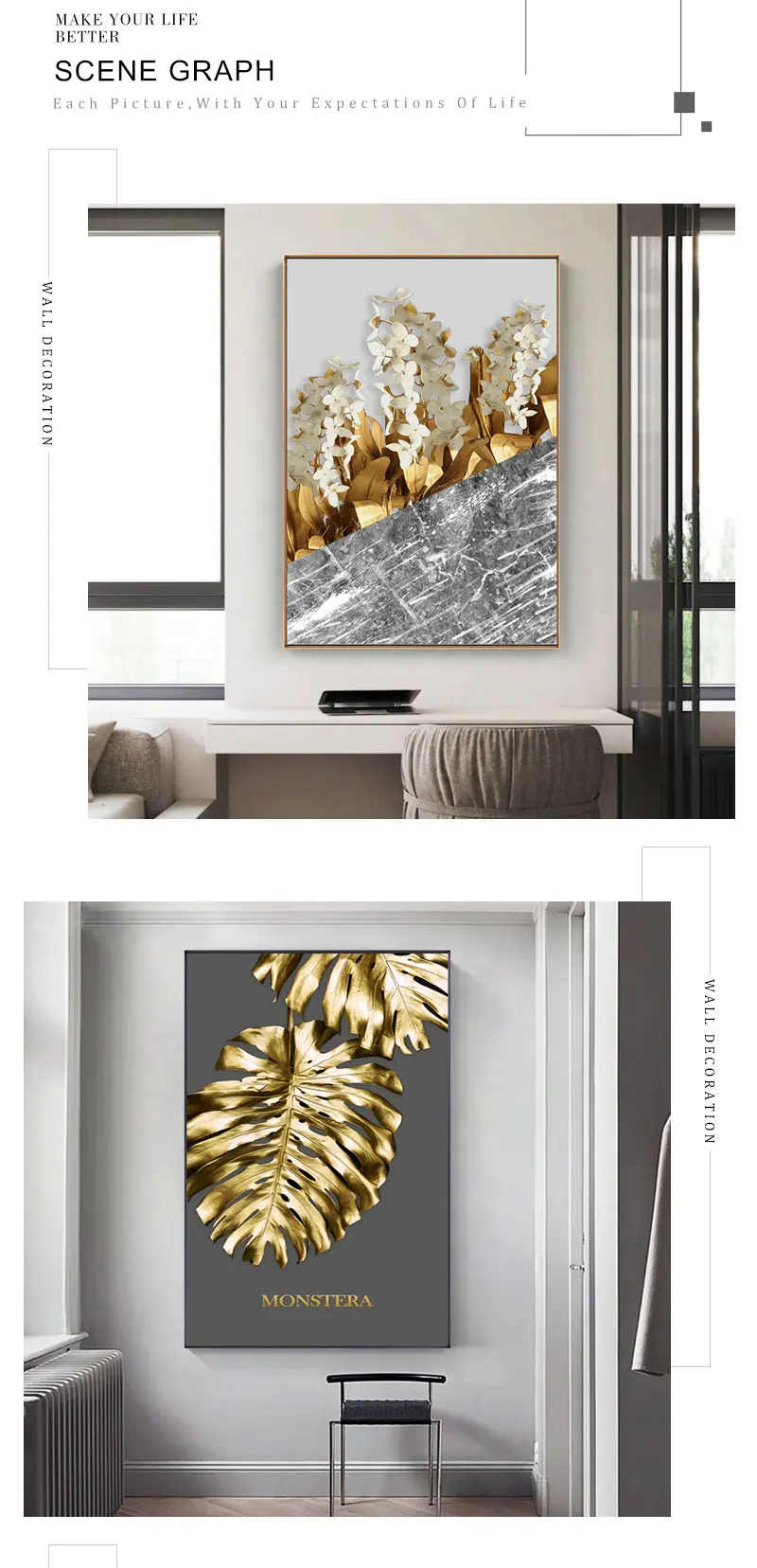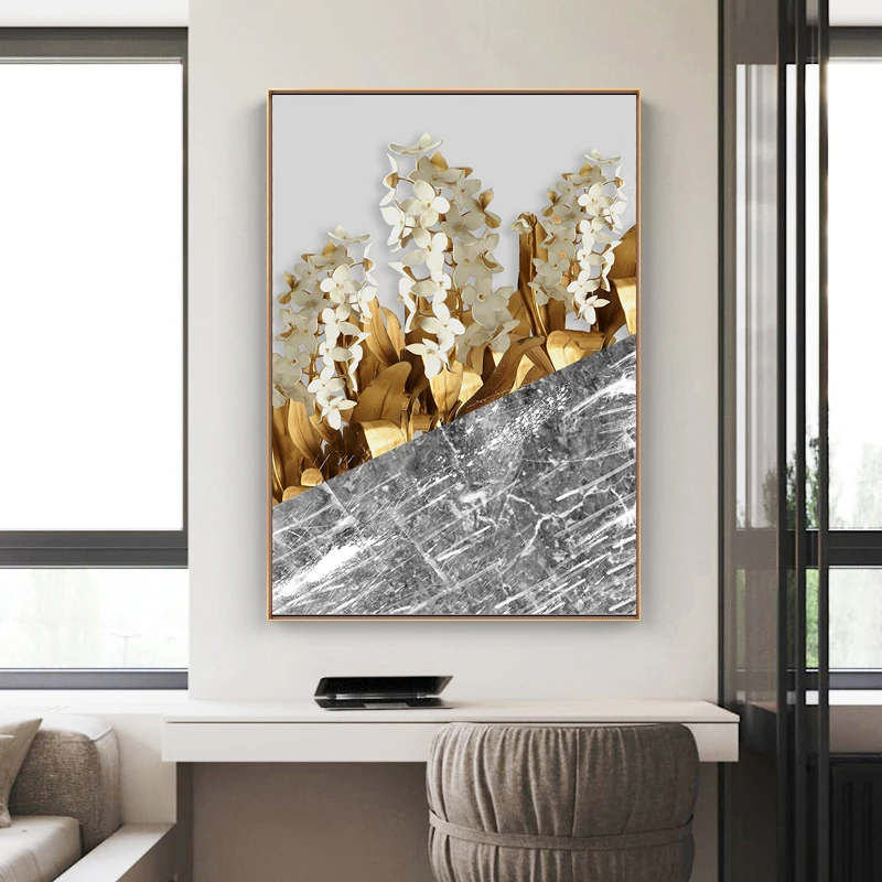 Скандинавские настенные картины с изображением золотых листьев монстеры цветов на холсте скандинавские постеры с растениями декоративные картины настенные картины для комнаты