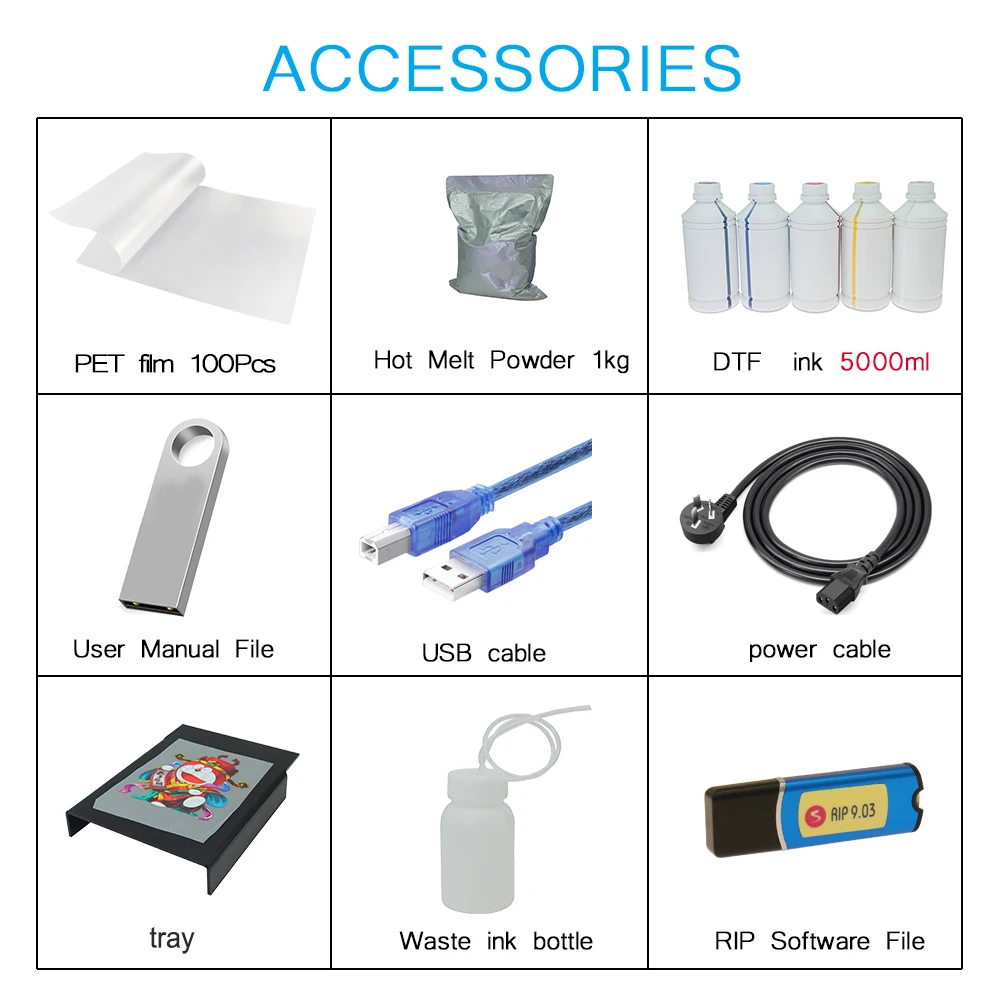 Package 1A3 DTF Printer+ DTF Ink+ DTF Film +Powder+Software