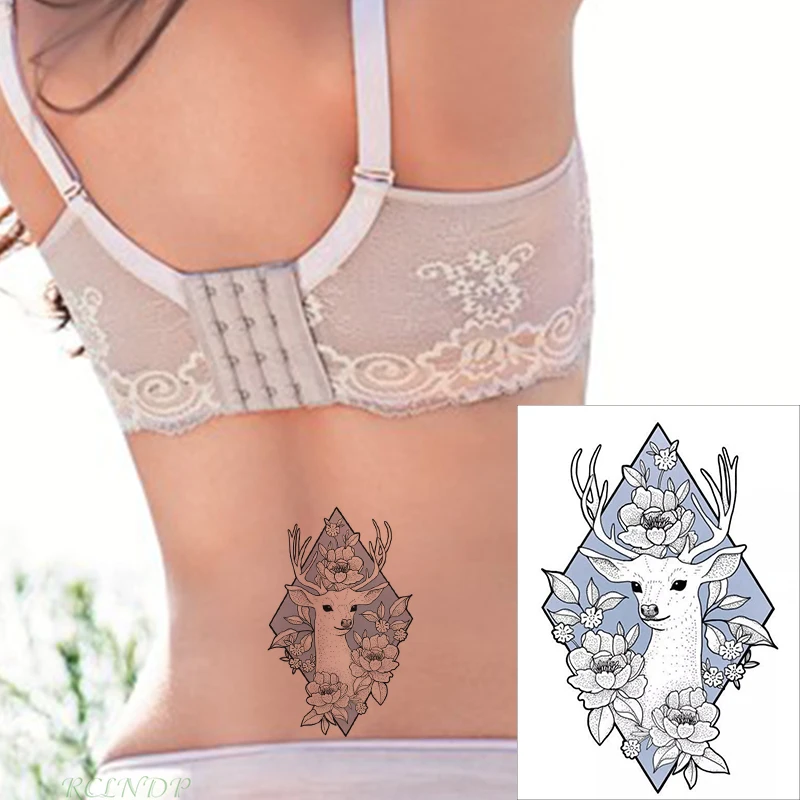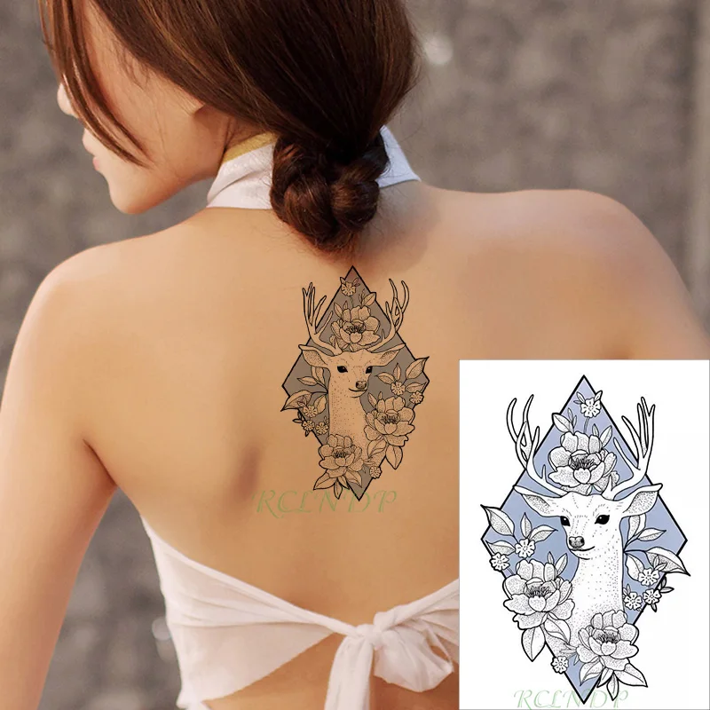Водостойкая Временная тату-наклейка, олень, цветок, геометрические узоры, искусственная тату флэш-тату, руки, ноги, назад для детей, мужчин, женщин