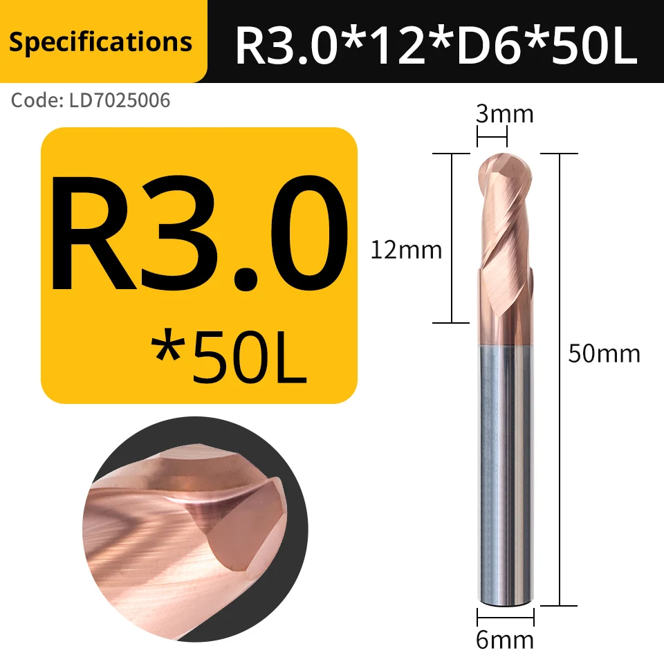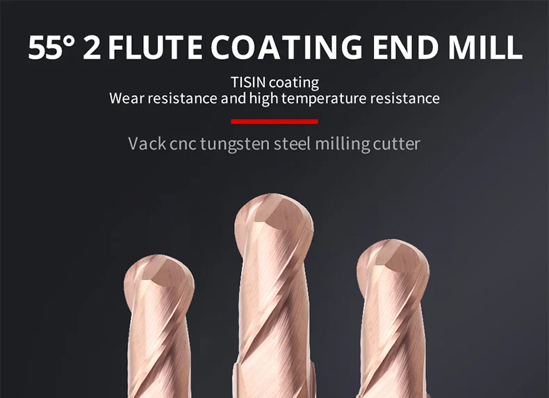 Сферическая Концевая фреза VACK HRC55 с 2 канавками, карбидная фреза с ЧПУ для металлических фрез, режущие инструменты с покрытием из сплава