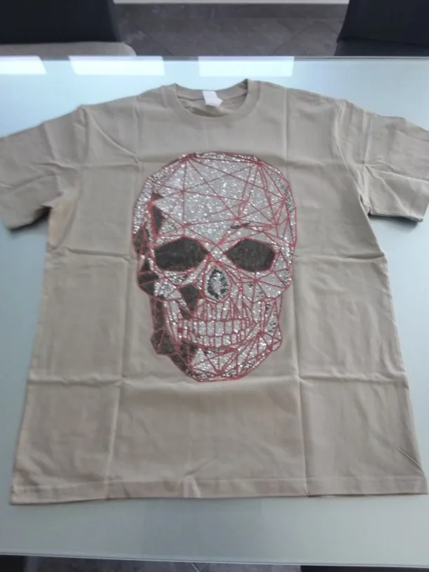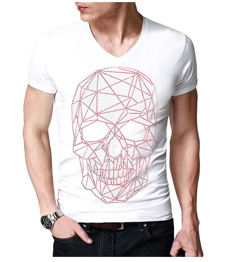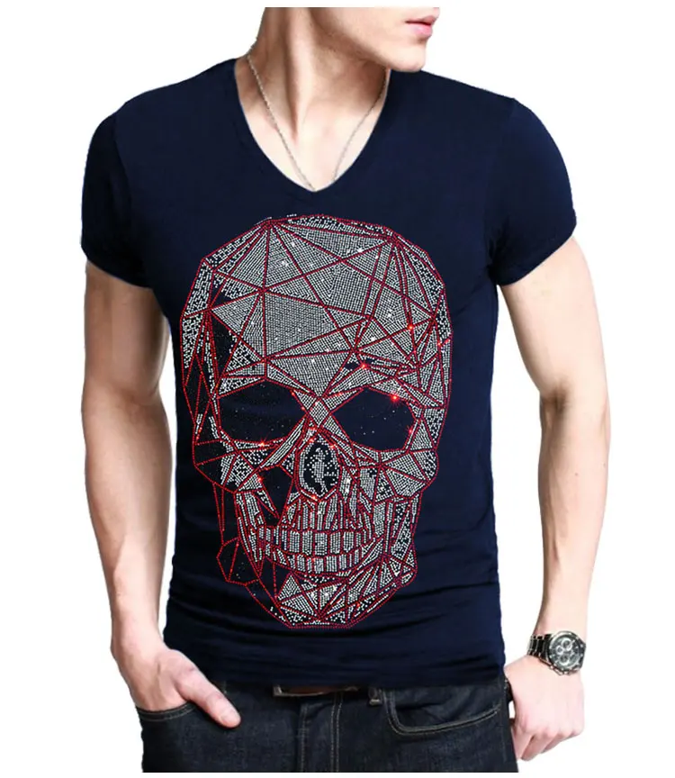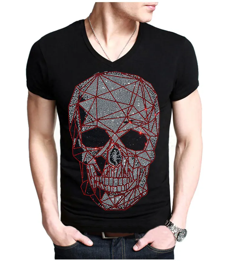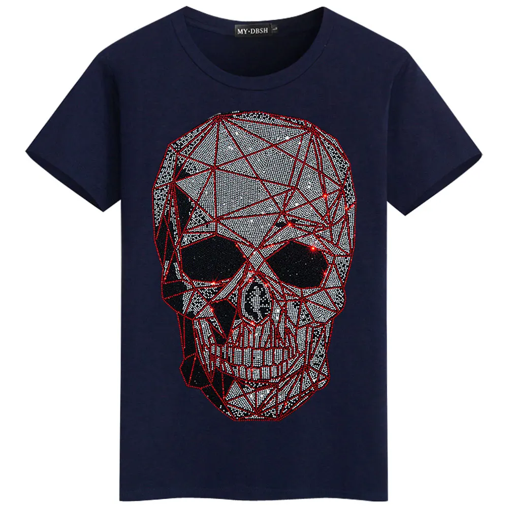 Размера плюс модные череп стразы футболка для мужчин