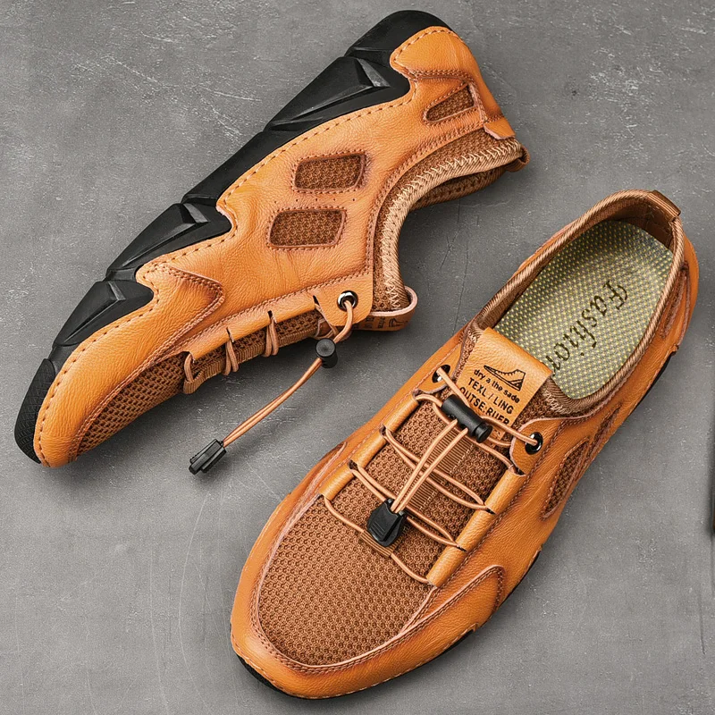 Мужские сетчатые кроссовки, повседневные уличные кожаные рабочие ту...