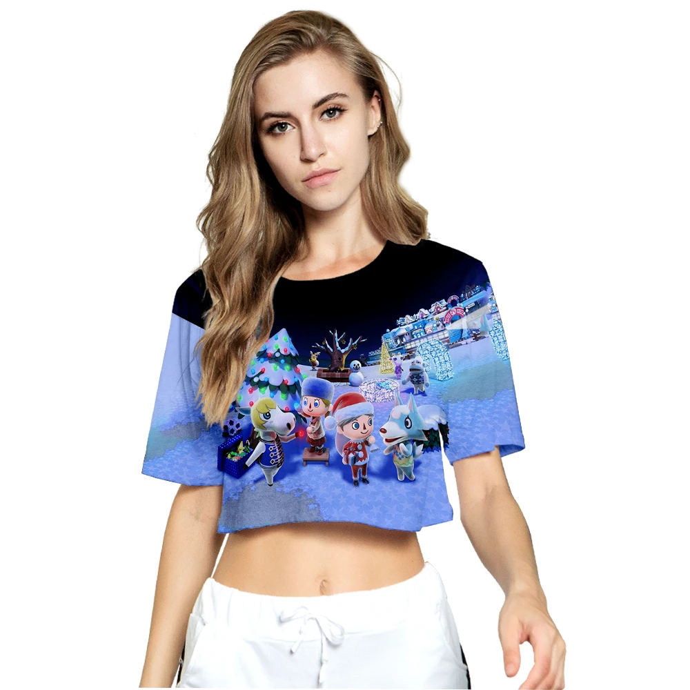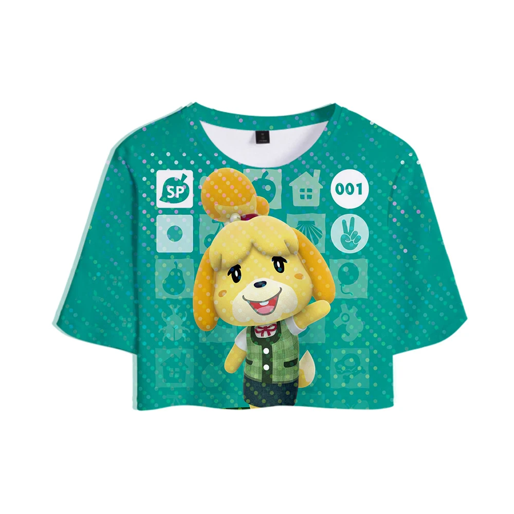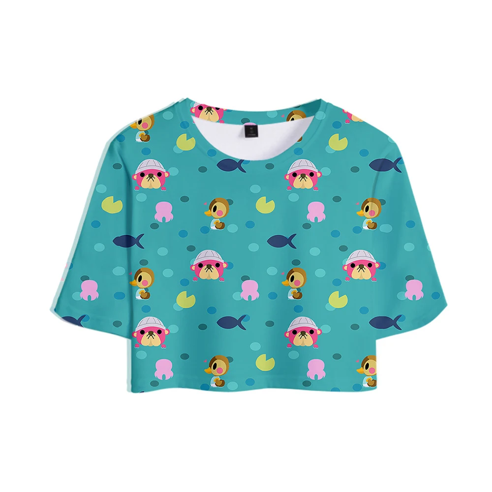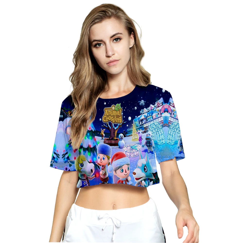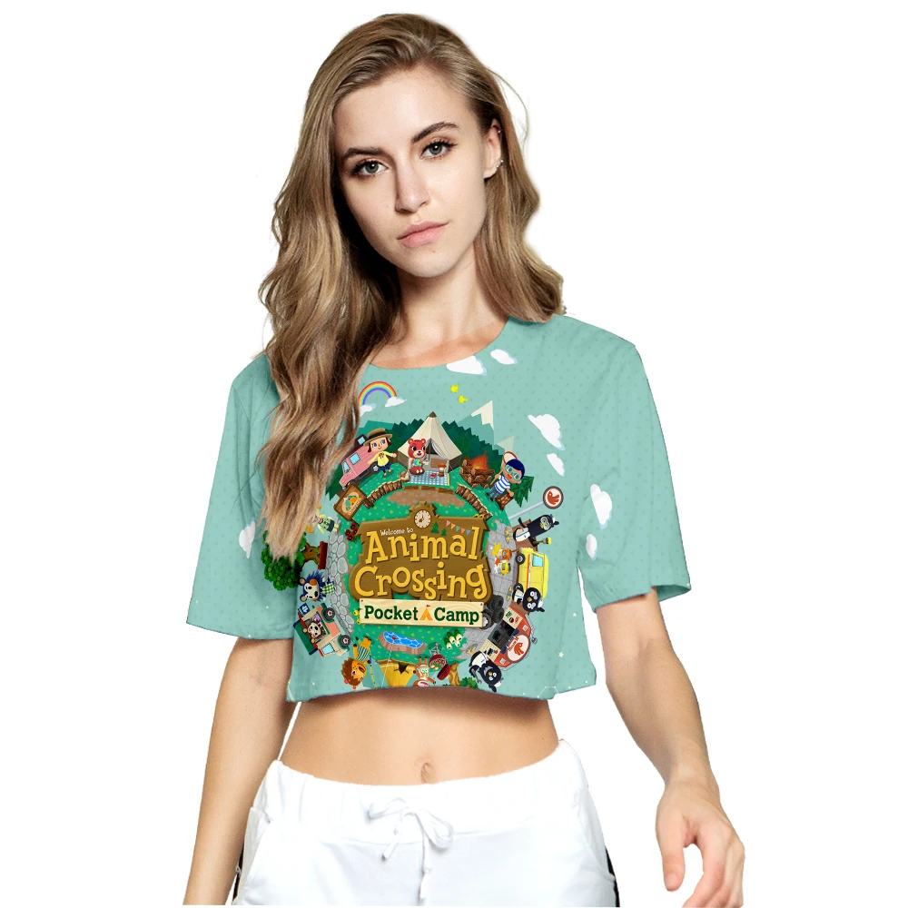 Футболка женская в японском стиле, модная рубашка с пересекающимися животными, в стиле Харадзюку, короткий топ до пупка, летняя одежда