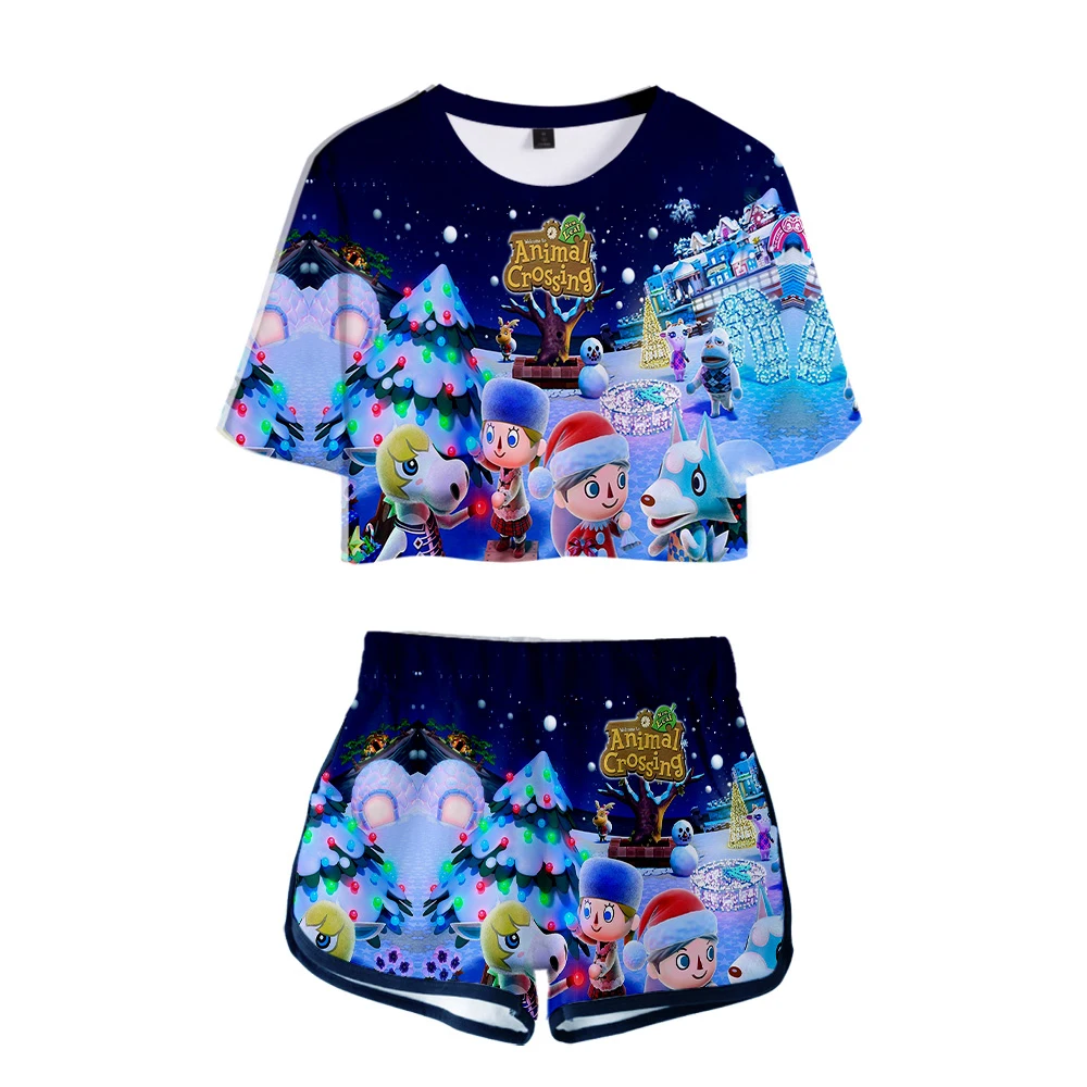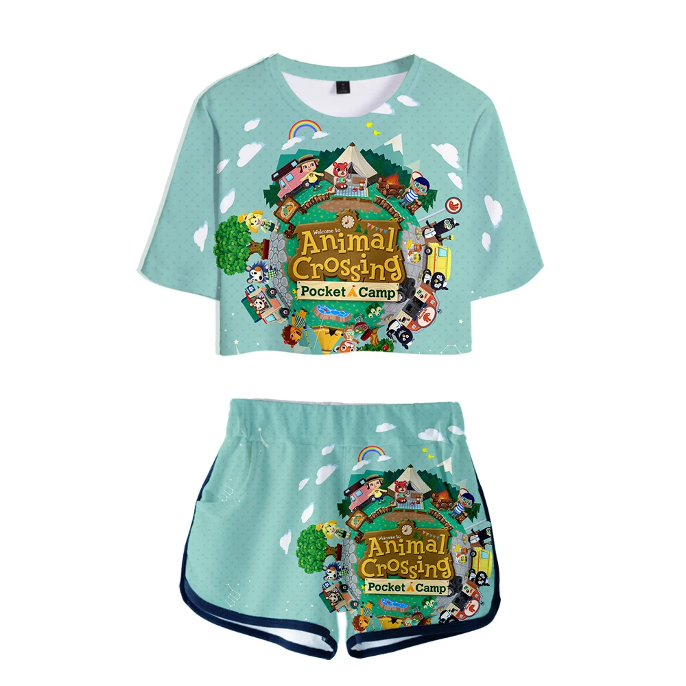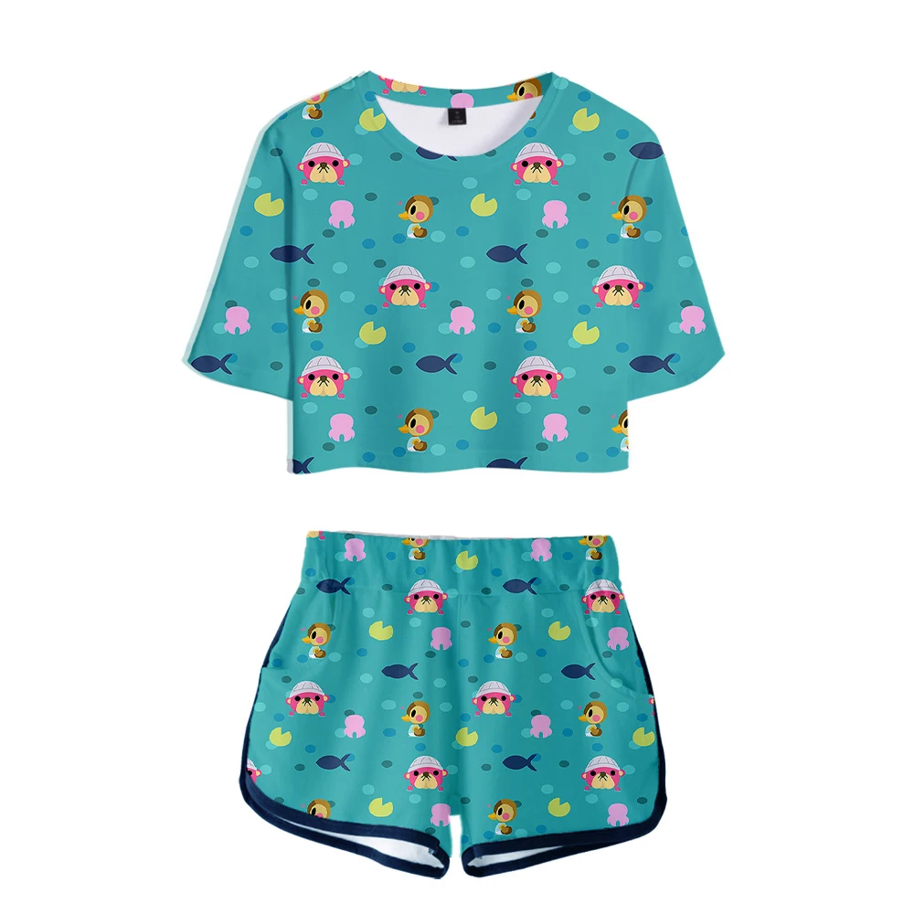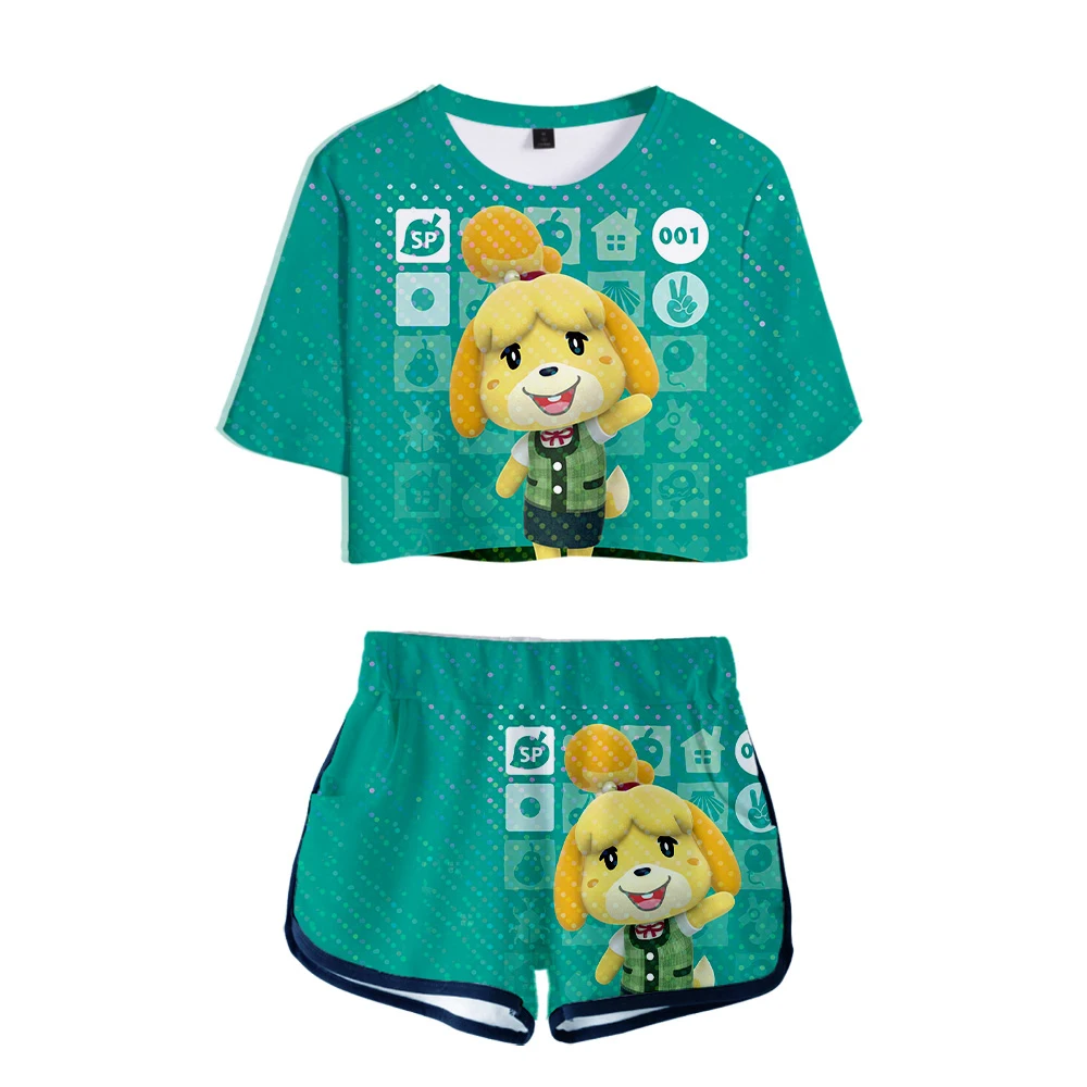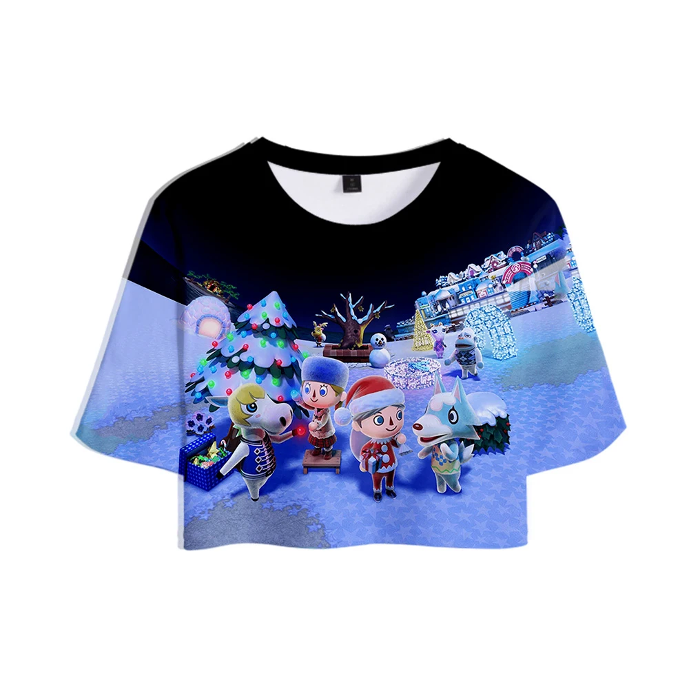 Футболка женская в японском стиле, модная рубашка с пересекающимися животными, в стиле Харадзюку, короткий топ до пупка, летняя одежда