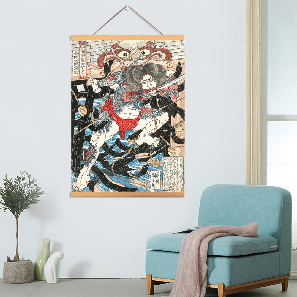 Печать на холсте постер из массива дерева подвесной свиток домашний...