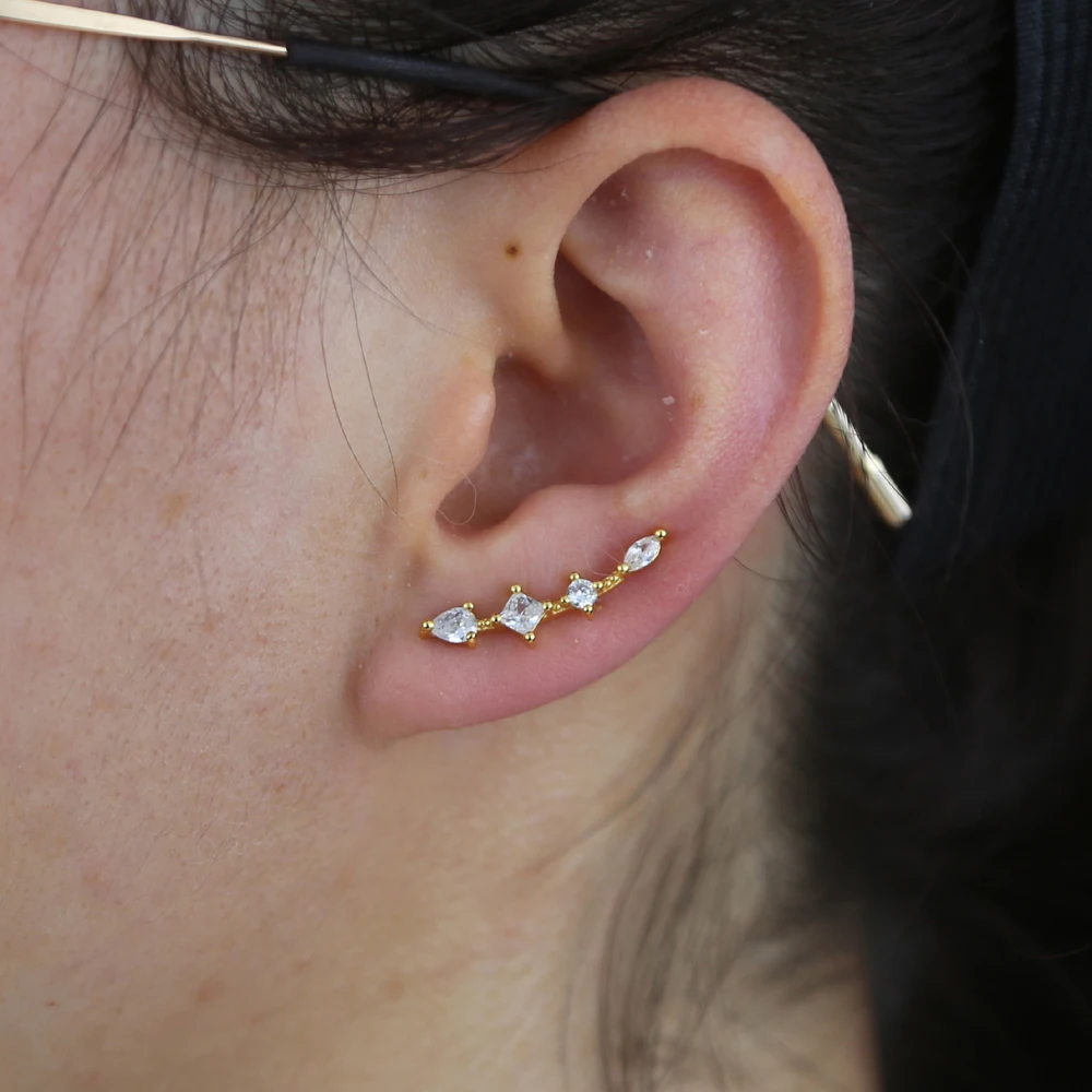 Новый золотой Цвет капелькой слезинкой, фианиты, кристаллы, Post серьги-гвоздики, серьги микро проложить Подвесные серьги-гвоздики, серьги для женщин ювелирные изделия