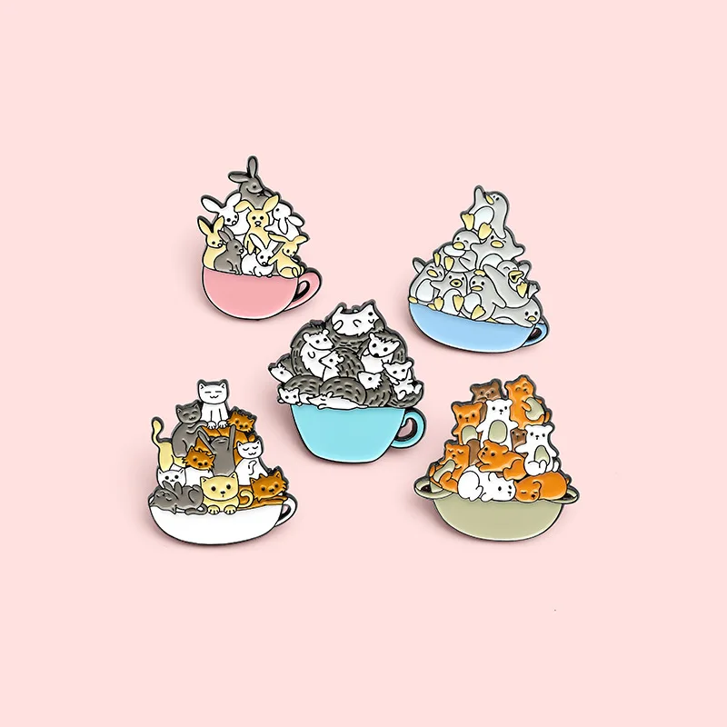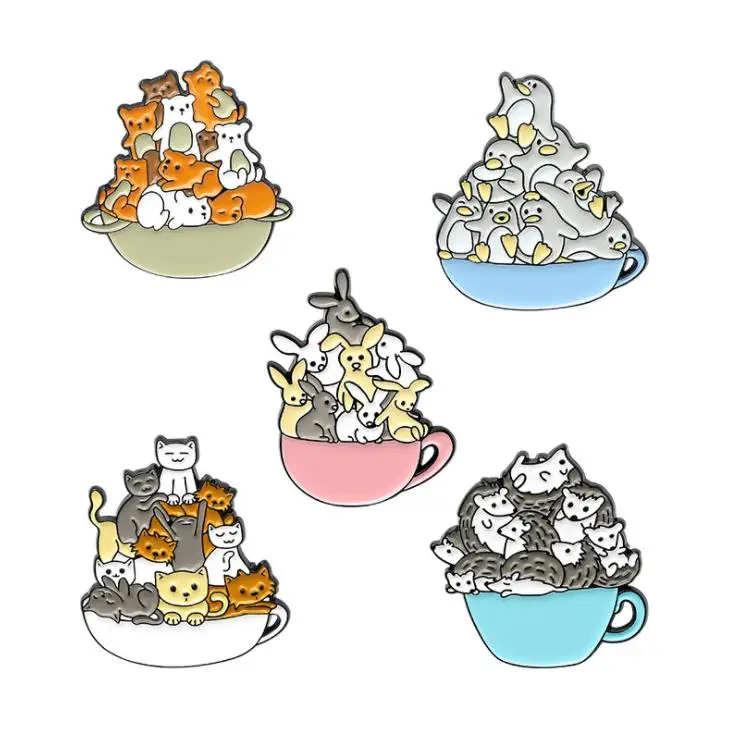 Эмалированная булавка в виде чашки животного, индивидуальный значок...