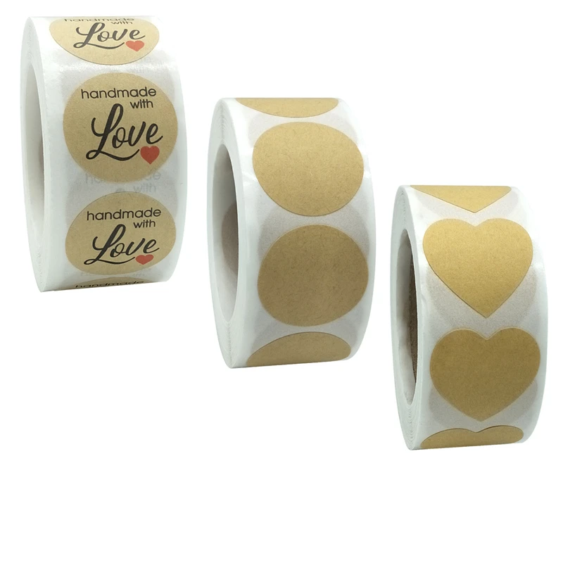 500 шт., 1 дюйм., спасибо, Круглый сердец, крафт-бумага, ручная работа, наклейка, карта, для вечерние, этикетка для упаковки подарков