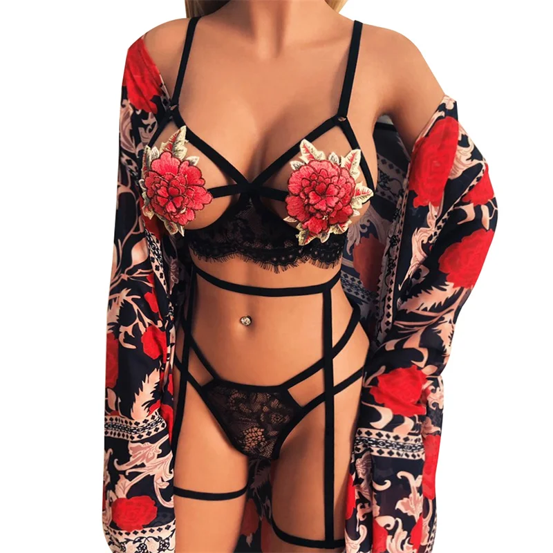 Пижама женская экзотическая, кружевная, с вышивкой роз, с пряжкой на спине