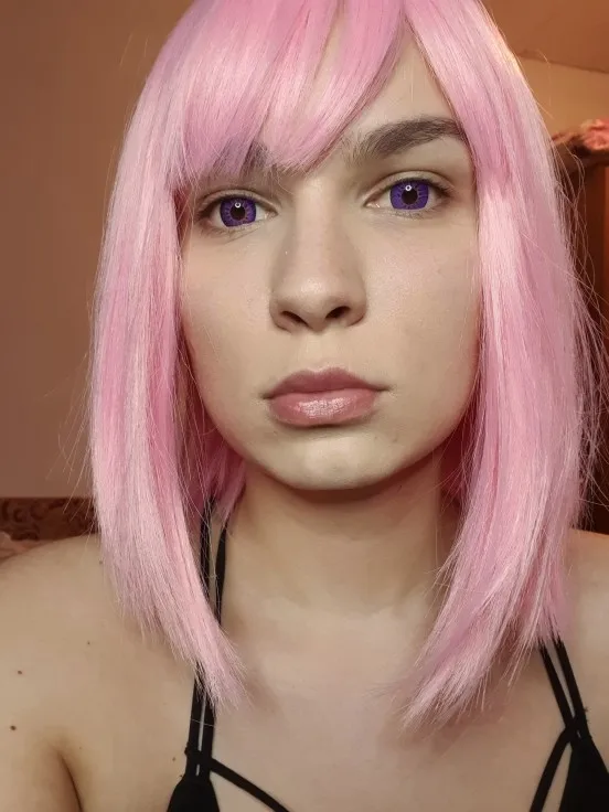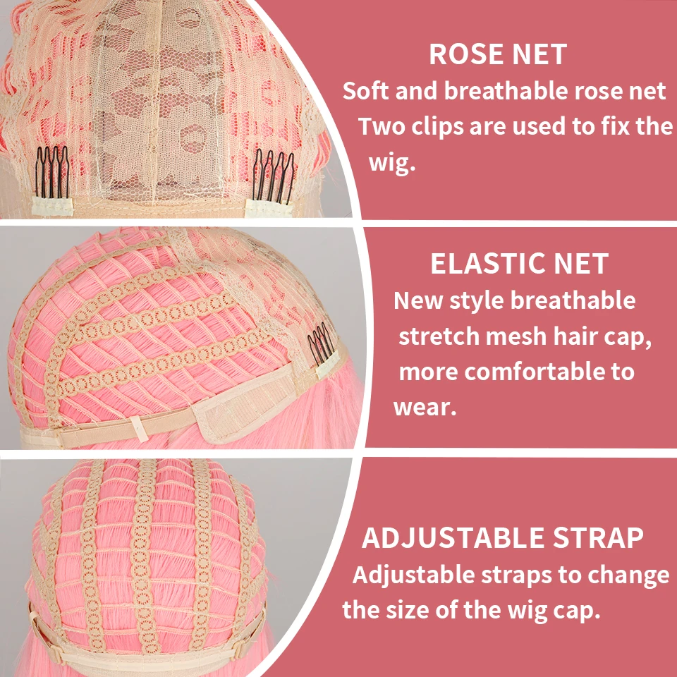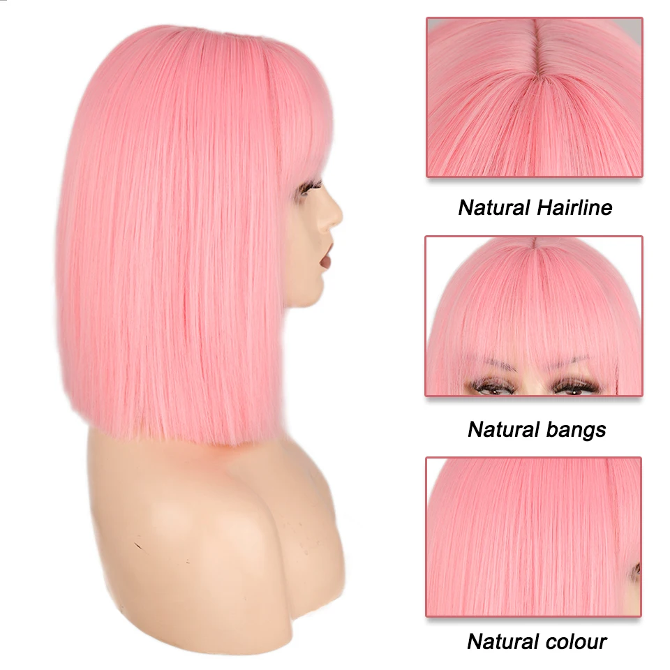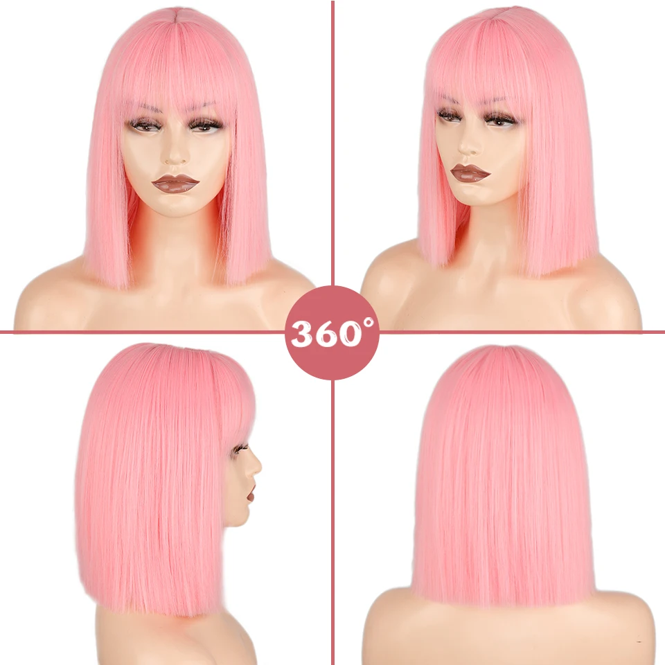 Женский короткий синтетический парик, черный, розовый, фиолетовый, с челкой