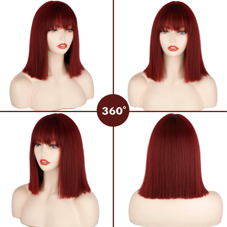 Синтетические парики для женщин, прямые волосы красного вина, средн...