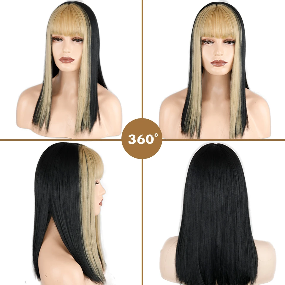 Синтетические парики, длинный черный прямой парик с челкой для женщ...