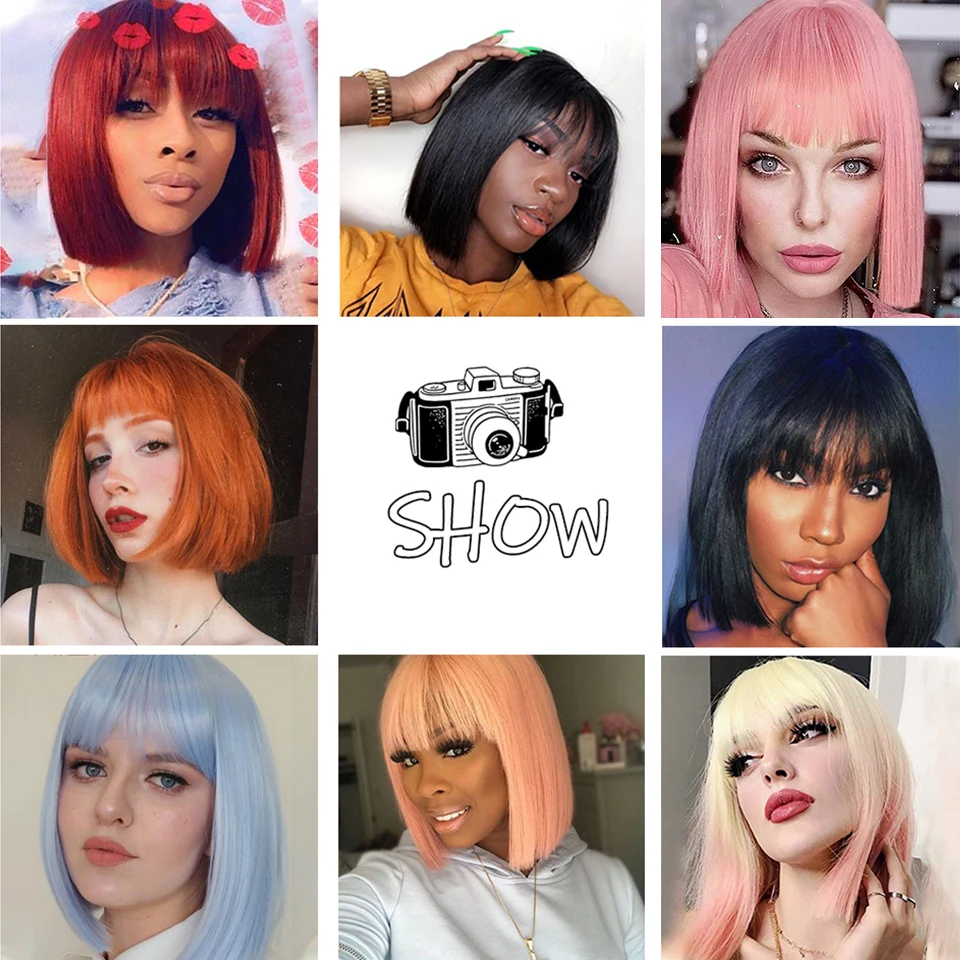 Синтетический короткий парик Боб с челкой для дам, парик Боб, оранж...