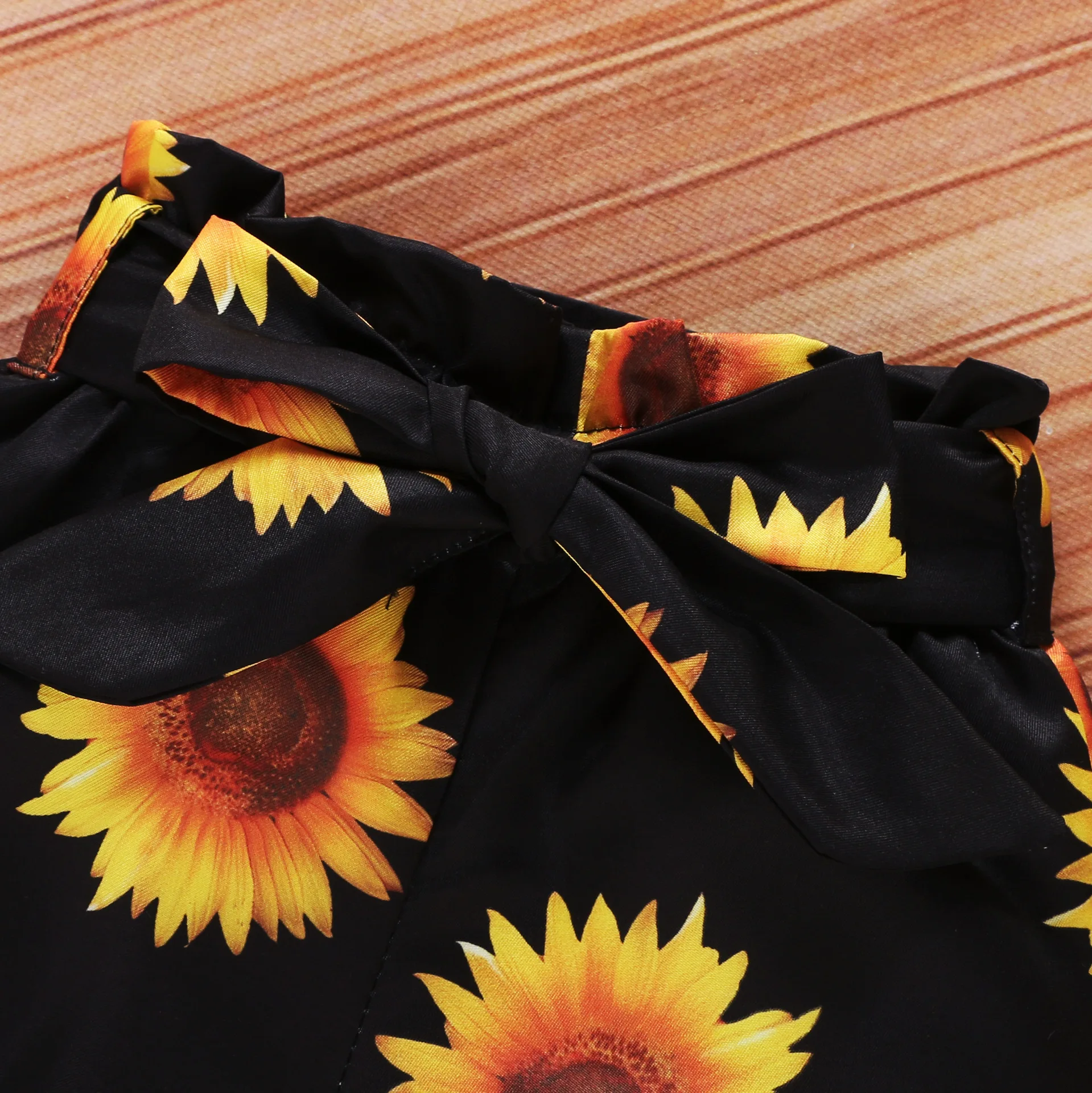 Распродажа, брендовая Newborn-24M одежда для маленьких девочек Комбинезон для маленьких девочек с рисунком подсолнуха, комплект одежды для маленького ребенка, милые комплекты для малышей из 3 предметов с героями мультфильмов