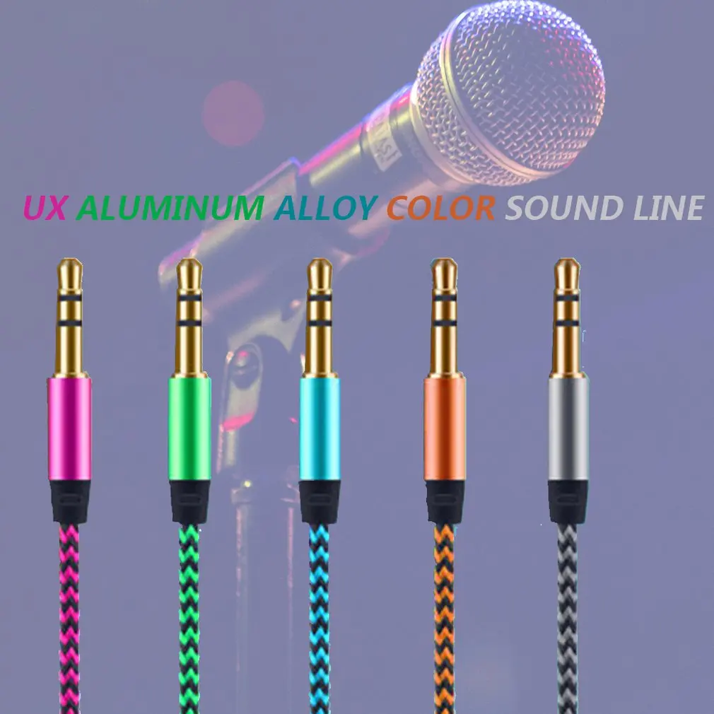 Аудиокабель со штыревыми соединителями на обоих концах из алюминиевого сплава, 3,5 мм, аудиокабель с цветной оплеткой для подключения внешних устройств, Универсальный Автомобильный Кабель