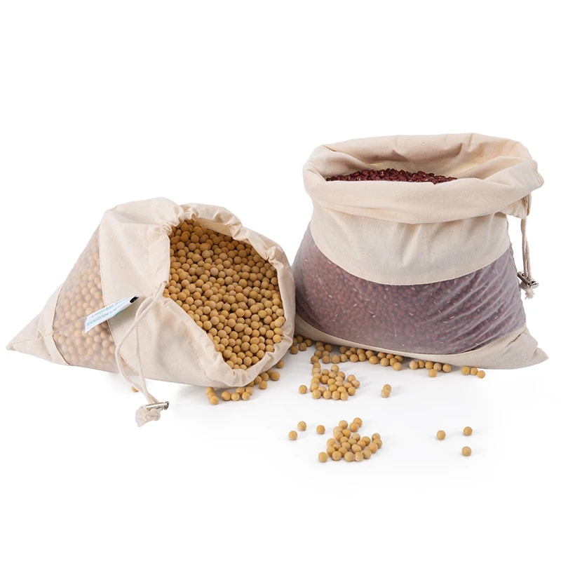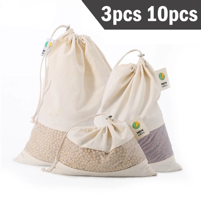 Набор хлопковых сумок, кухонная сумка для хранения, хлопковая продуктовая сумка многоразового использования с кулиской и окошком