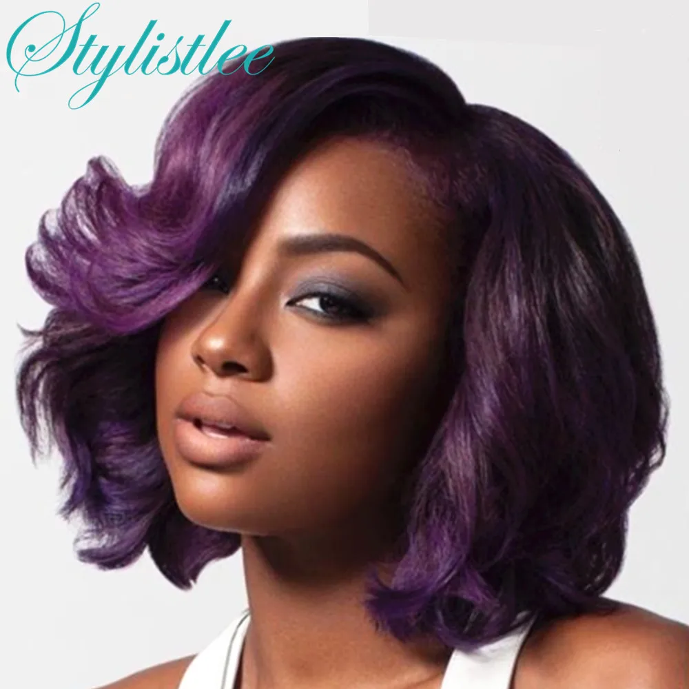 Stylistlee объемный волнистый парик Боб Wig13x4 кружевной фронтальный парик Выделите Цветные человеческие волосы парики предварительно сорванные 360 короткие парики Фиолетовый Боб Femme для женщин